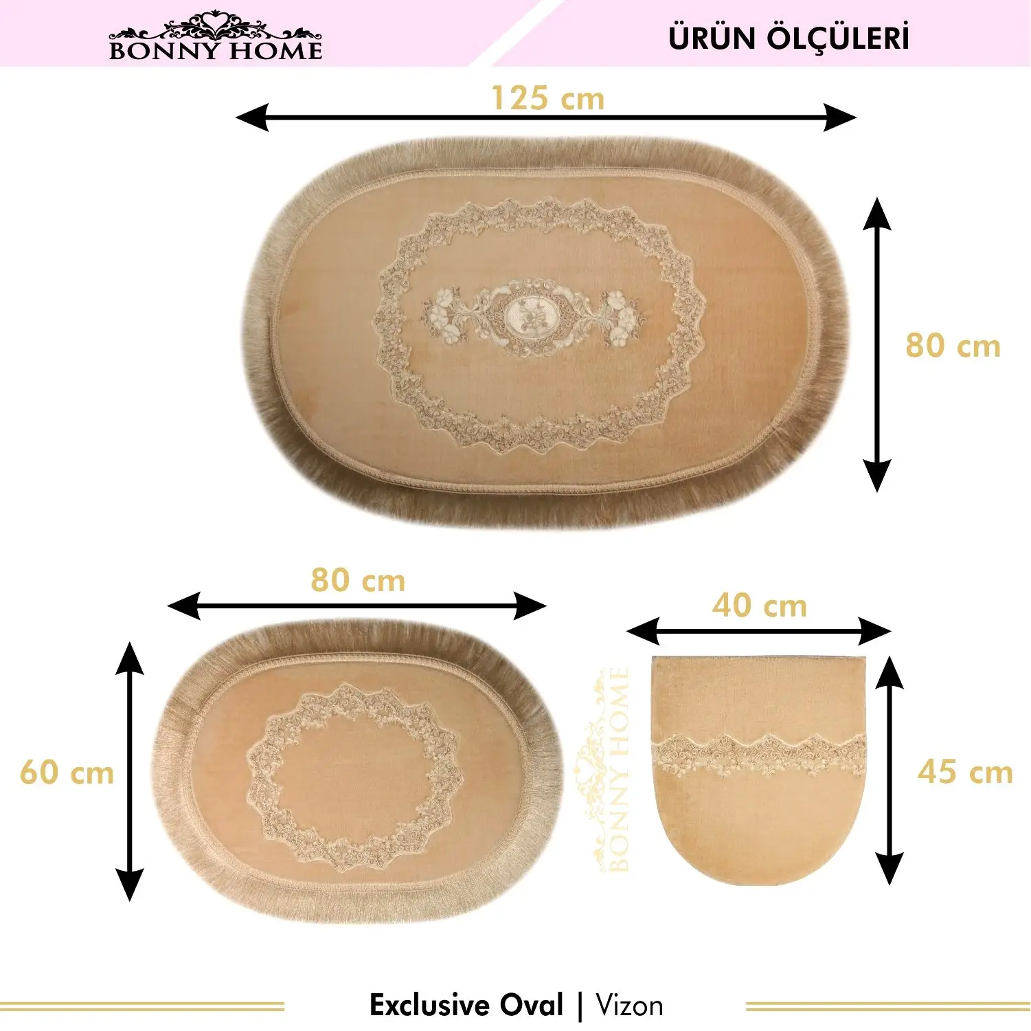 Product Name: Bonny Home Esclusivo Set Di Tappeti Lavabili In Lavatrice A Base Di Cuoio Antiscivolo In Peluche Francese 3 Pezzi Beige