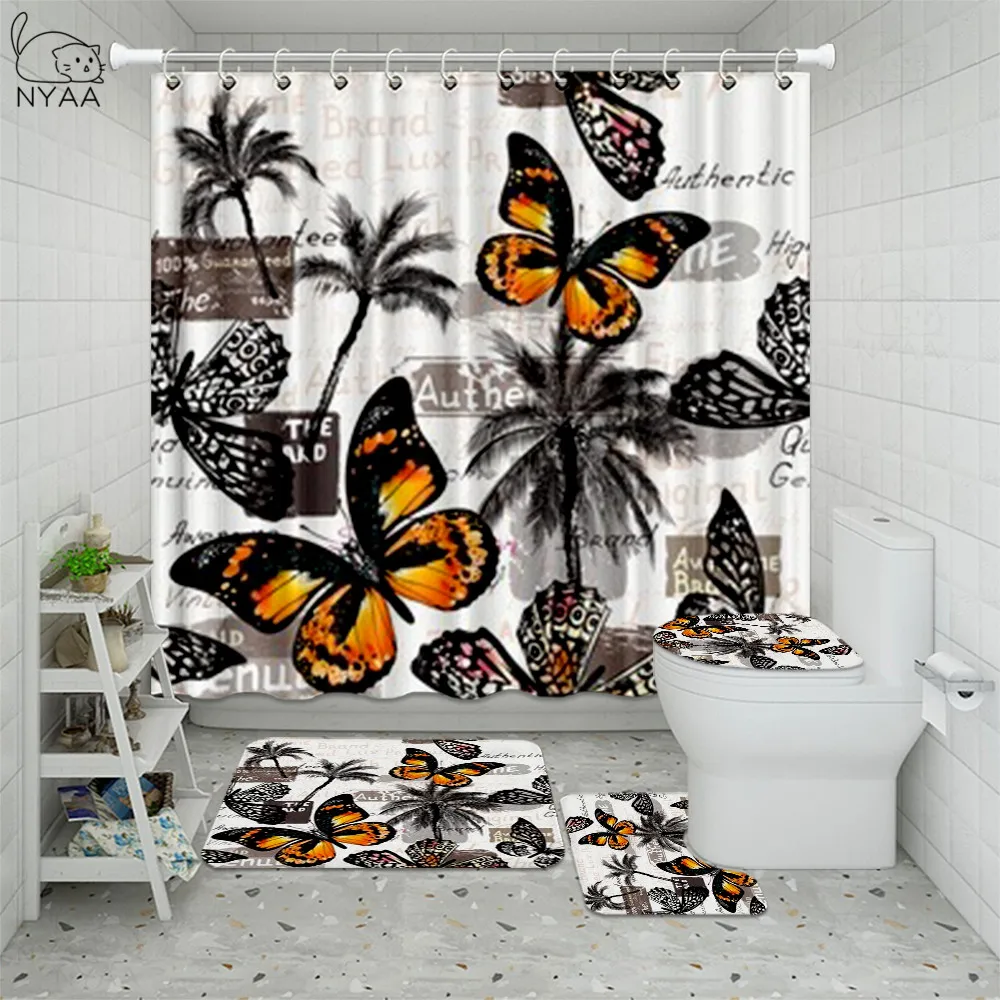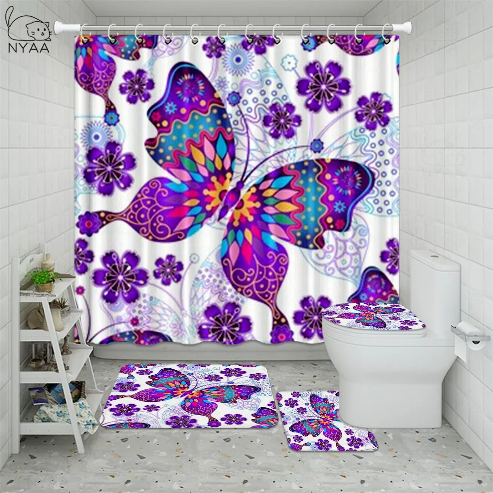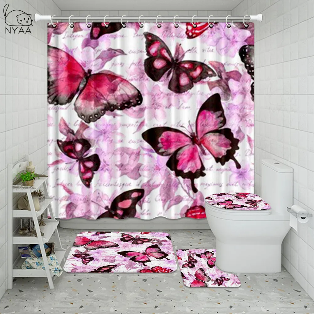 Special Offer Farfalla Del Fiore Stampato Tende Da Doccia Bagno Tenda Rosa Rosa Set Da Bagno Tavolette Copriwater Tappeti Da Bagno Antiscivolo Zerbino Discount (45%OFF) Today!
