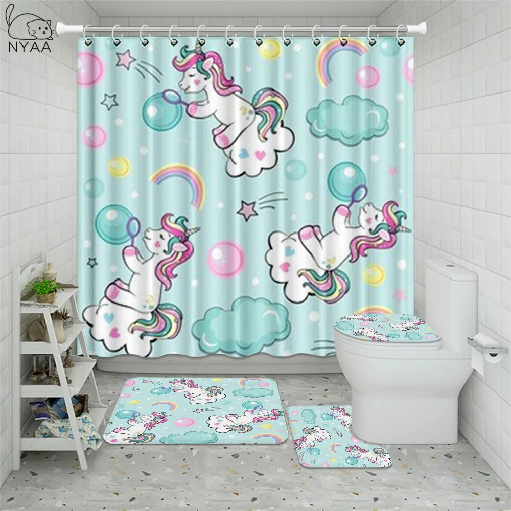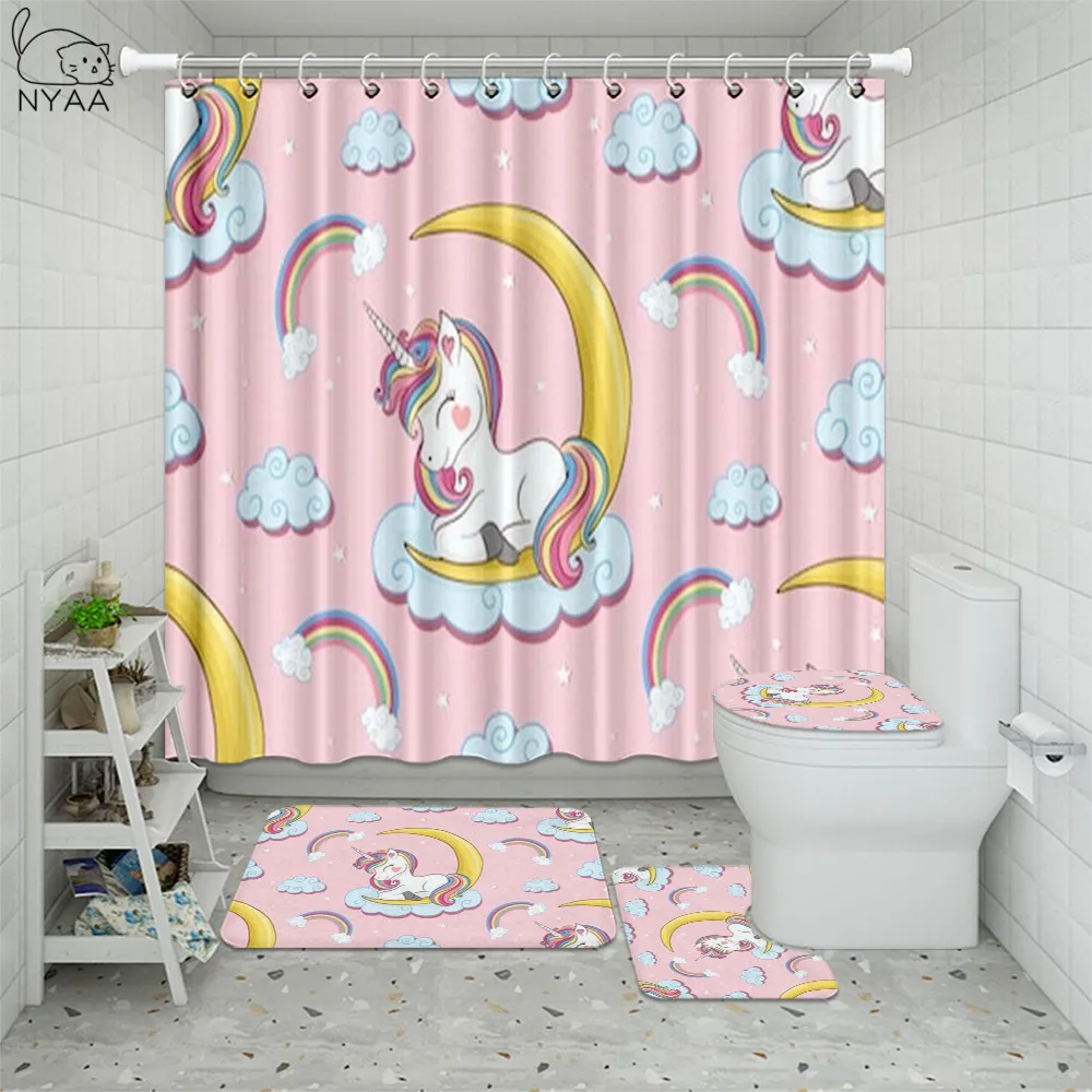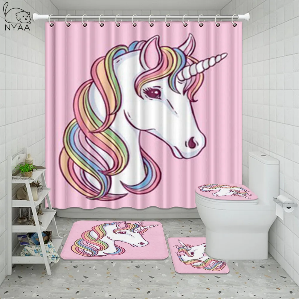 Special Offer NYAA 4pcs Set Tenda Della Doccia 3D Unicorno Bagno Tende Con Ganci Slittamento Non Bath Zerbino Copertura Wc Tappeti Zerbino Complementi Arredo Casa Discount (45%OFF) Today!