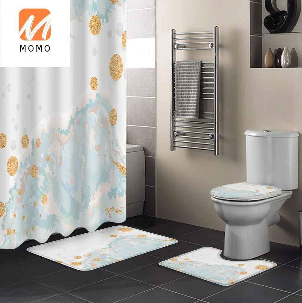 Product Name: Tappetino Da Bagno 4 Pezzi Set Da Bagno Piccolo Marmorizzato Fresco Set Di Tappeti Per Tende Da Bagno
