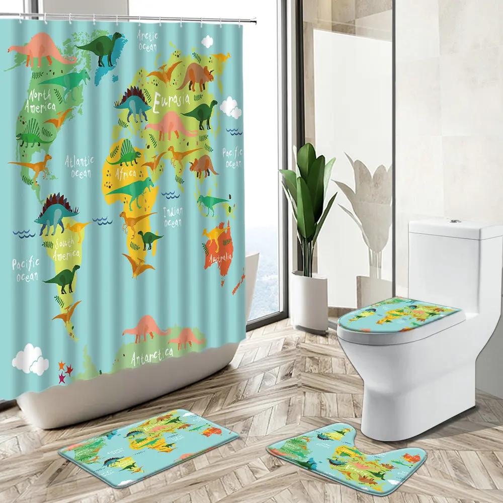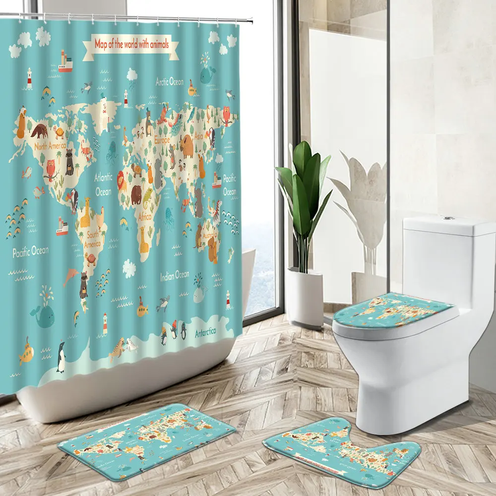 Product Name: Cartone Animato Mappa Animale Bambino Bagno Tenda Da Doccia Set Divertimento Leone Elefante Giraffa Creativo Decorazioni Per La Casa Tappeto Copriwater Tappetino Da Bagno