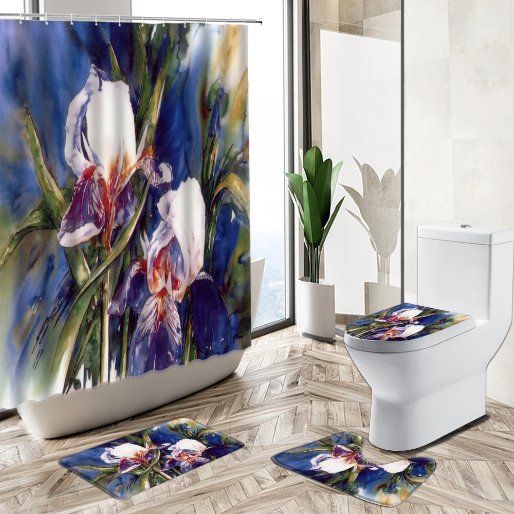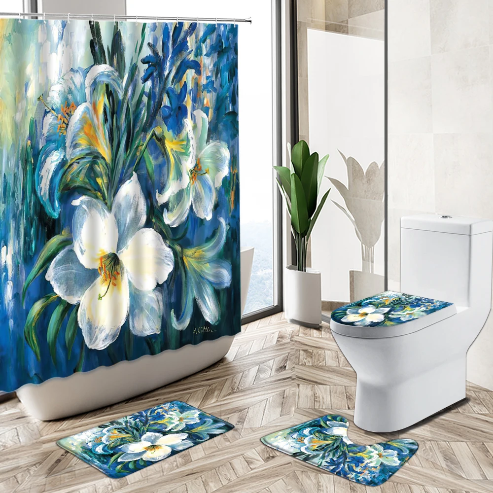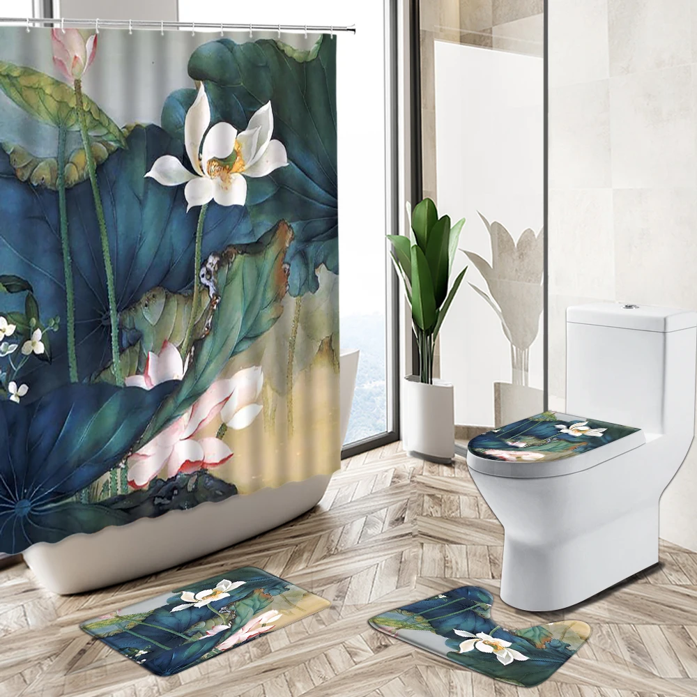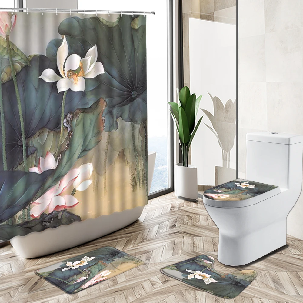 Special Offer Fiore Di Loto Pittura A Olio Tenda Per Doccia Pianta Floreale Stile Europeo Decorazioni Per Il Bagno Di Casa Tappeto Antiscivolo Copriwater Set Tappetino Da Bagno Discount (48%OFF) Today!