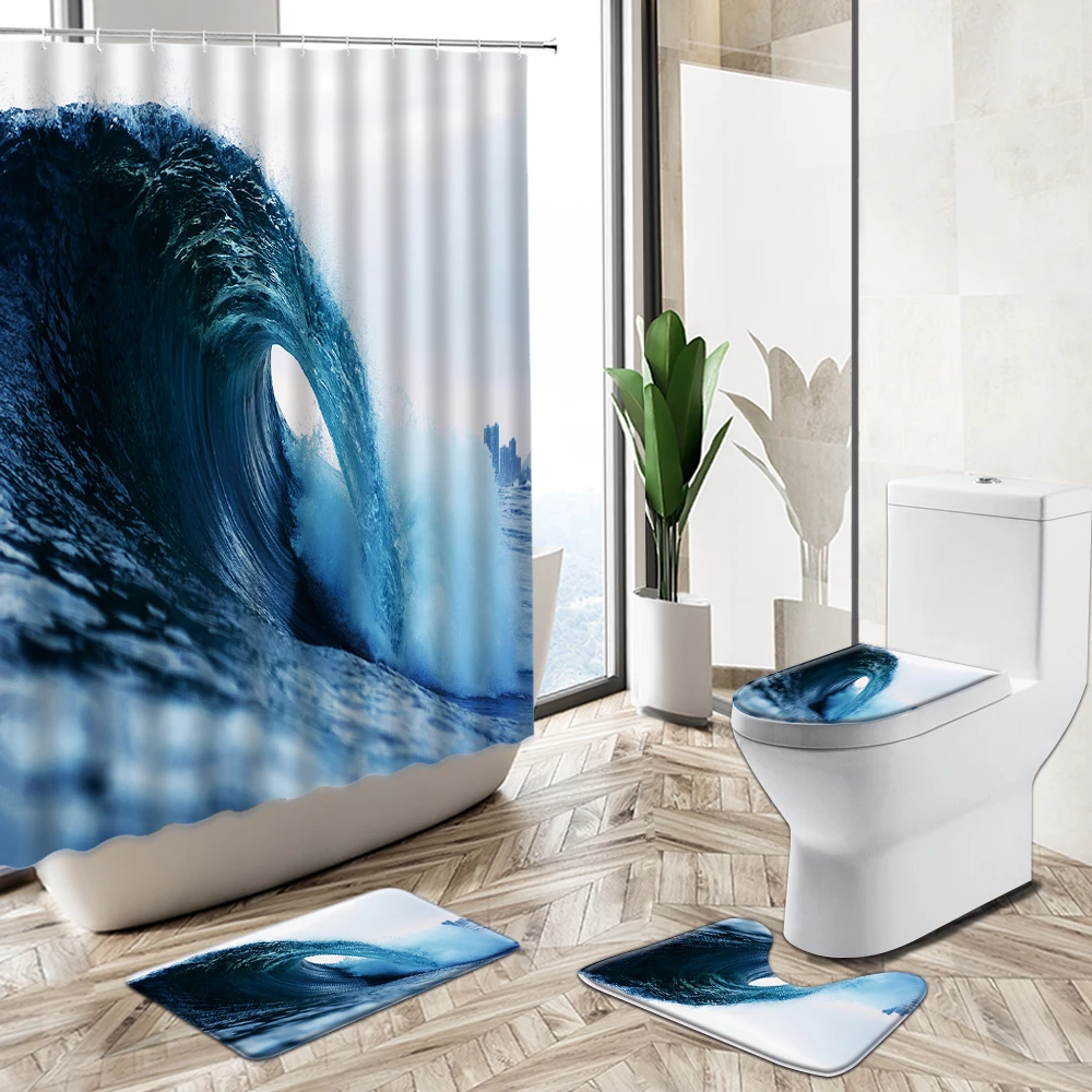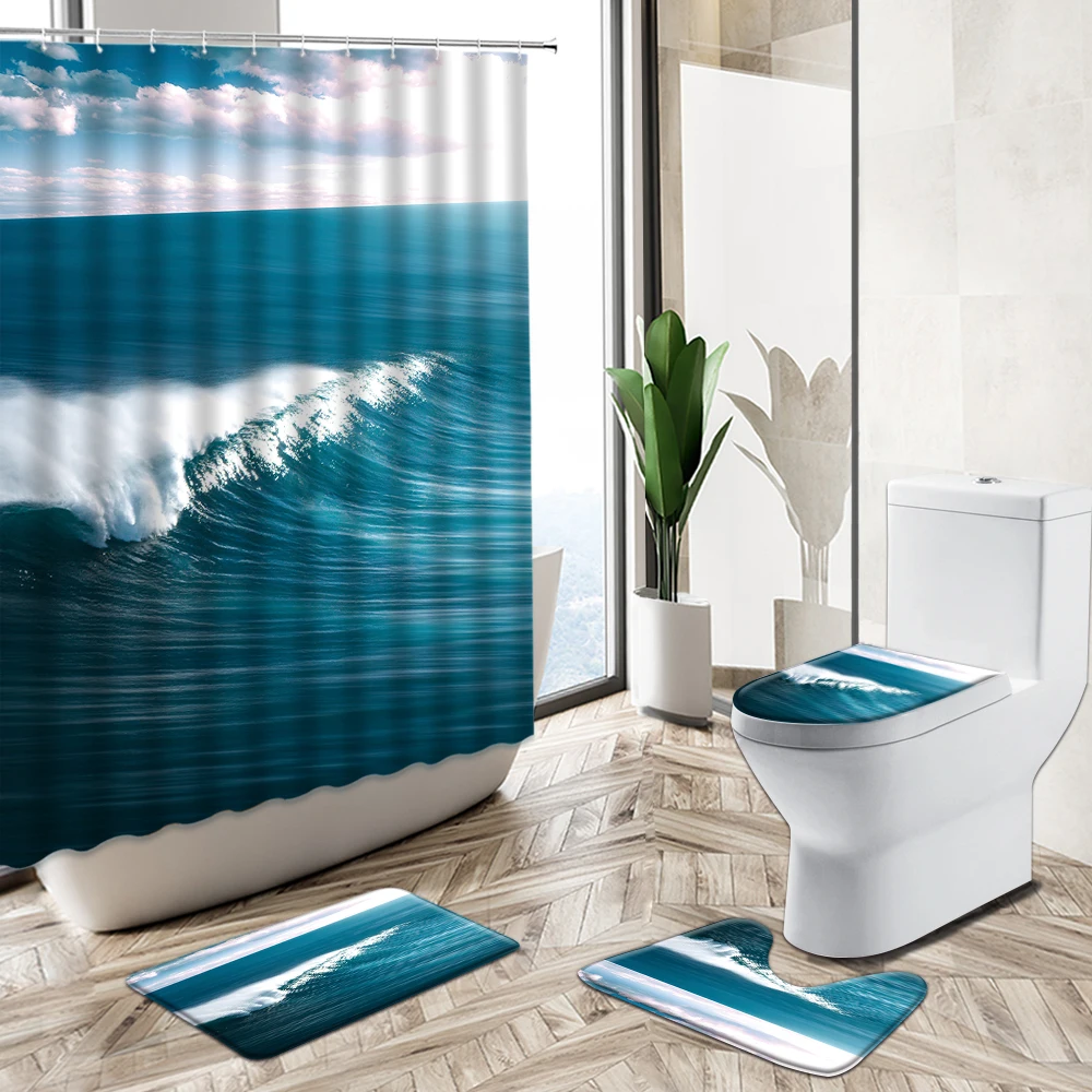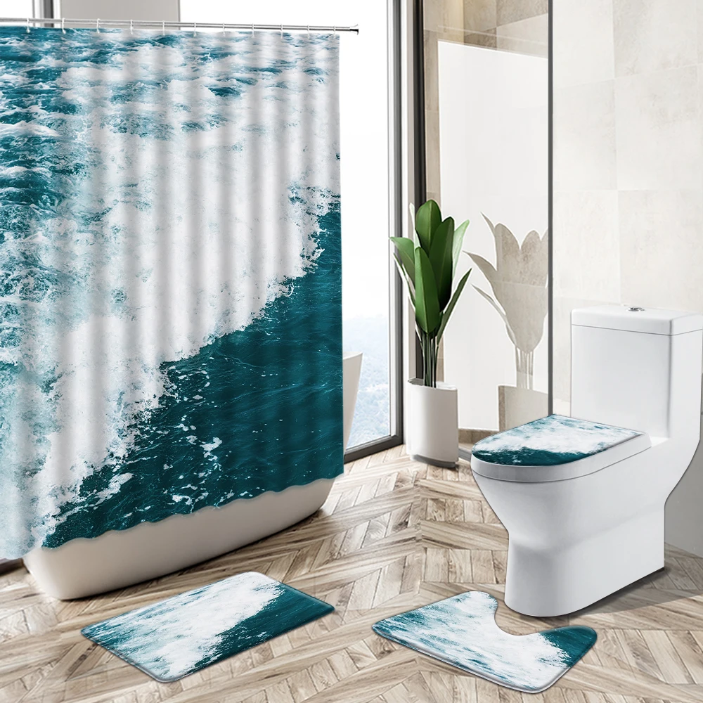 Special Offer Ocean Scenery Tenda Da Doccia Onde Di Mare Spiaggia Paesaggio Naturale Fotografia Tappeto Antiscivolo Coperchio Del Coperchio Della Toilette Set Di Decorazioni Per Il Bagno Di Casa Discount (48%OFF) Today!