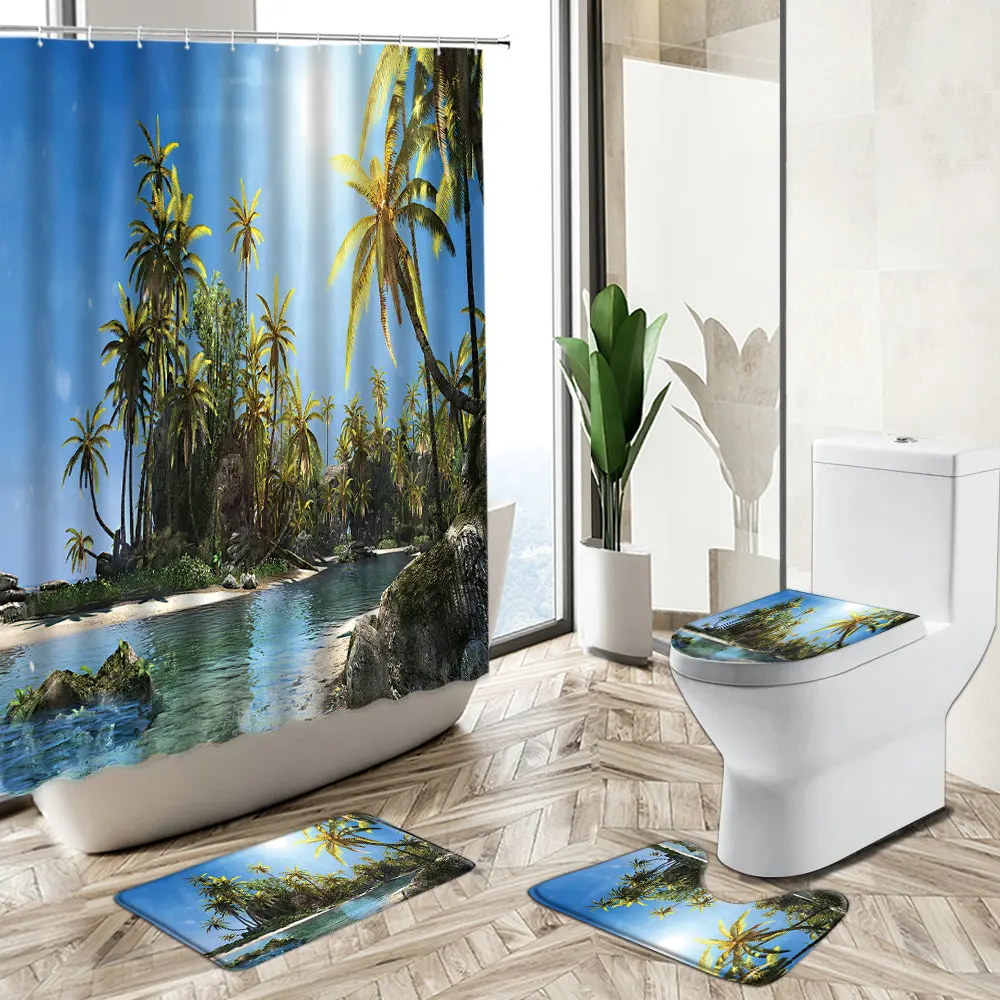Special Offer Oceano Tropicale Pianta Verde Scenario Tenda Da Doccia Palma Albero Delfino Estate Spiaggia Scenario Tappeto Copriwater Set Da Bagno Deco Discount (48%OFF) Today!