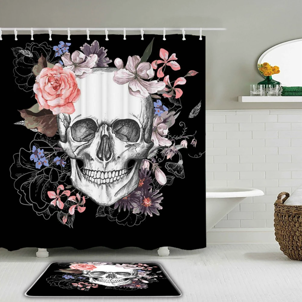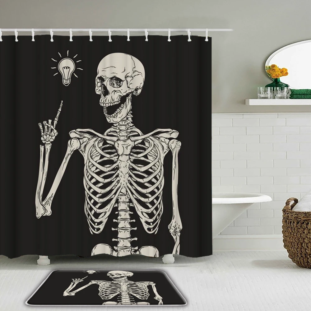 Special Offer Set Di Tende Da Doccia Con Stampa Scheletro Teschio Divertente Decorazioni Per Festival Di Halloween Tappeto Da Bagno Antiscivolo Tappeto Da Bagno In Flanella Discount (40%OFF) Today!
