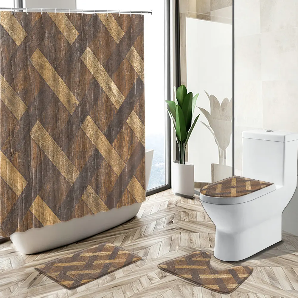 Product Name: 3D Antico Antico Porta In Legno Tenda Della Doccia Retrò Fattoria Di Campagna Fienile Arredamento Bagno Tappeto Antiscivolo Tappetino Da Bagno Set Coperchio Coperchio Wc