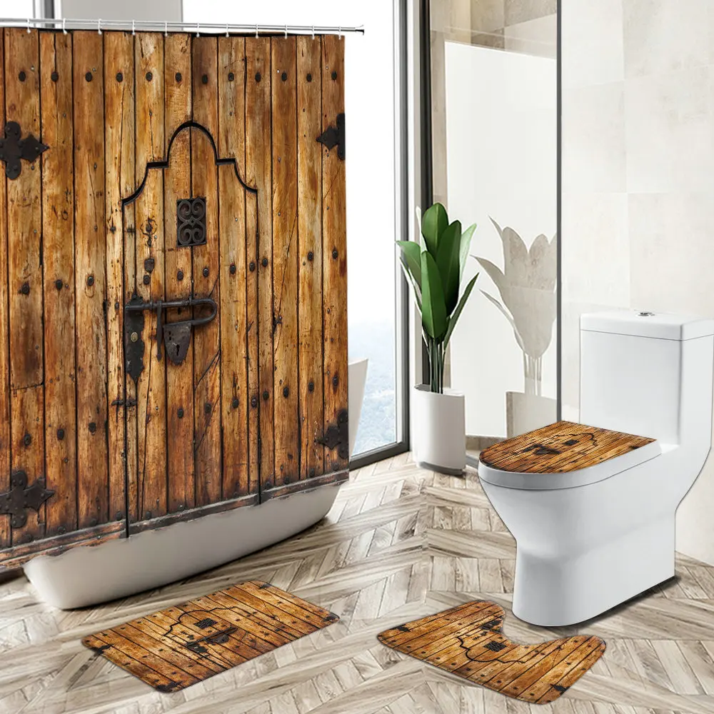Special Offer 3D Antico Antico Porta In Legno Tenda Della Doccia Retrò Fattoria Di Campagna Fienile Arredamento Bagno Tappeto Antiscivolo Tappetino Da Bagno Set Coperchio Coperchio Wc Discount (48%OFF) Today!
