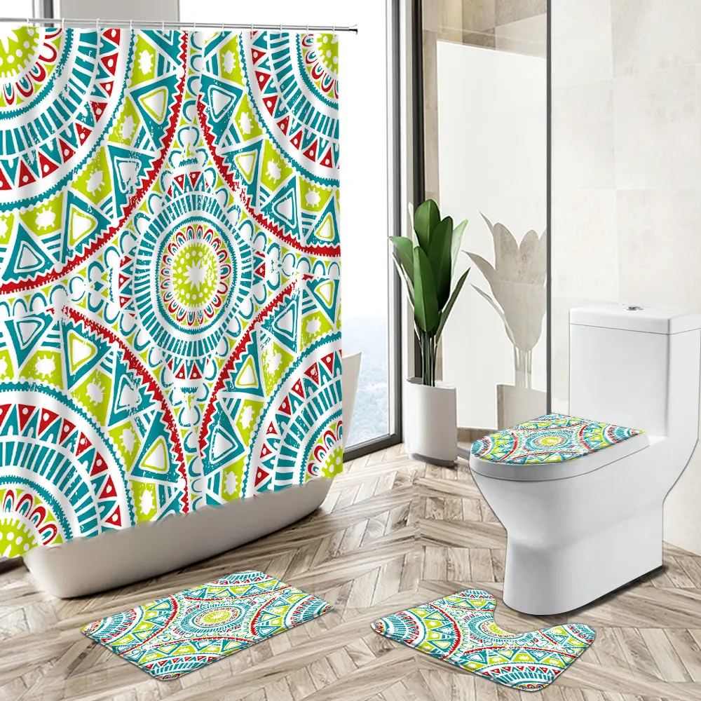 Product Name: Mandala Floreale Senza Soluzione Di Continuità Stampato Tenda Da Doccia Boemia Esotico Stile Etnico Antiscivolo Piedistallo Tappeto Copriwater Set Da Bagno