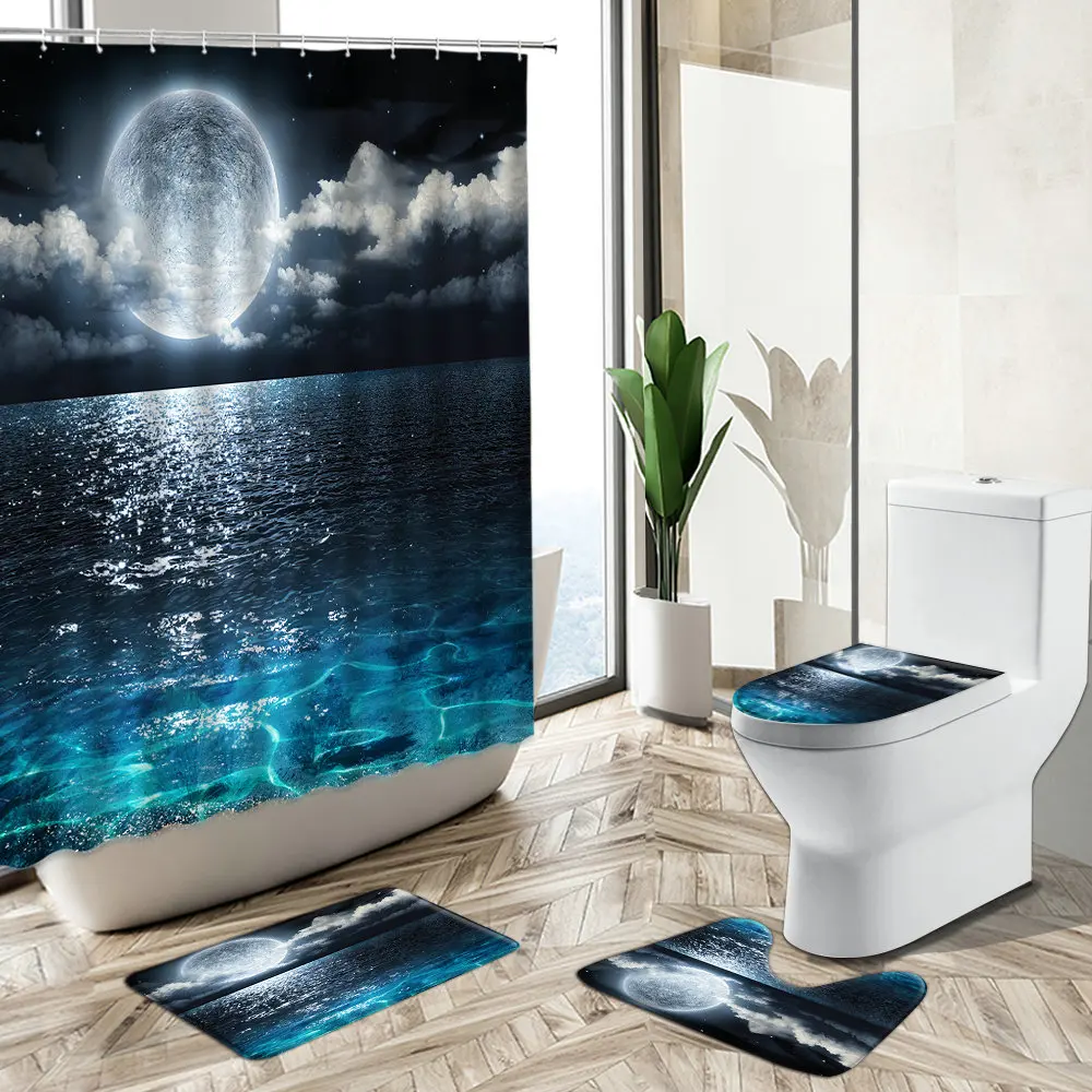 Special Offer Ocean Night View Tenda Per Doccia Wave Boat Paesaggio Naturale Fotografia Tappeto Antiscivolo Piedistallo Copriwater Set Di Decorazioni Per Il Bagno Discount (48%OFF) Today!