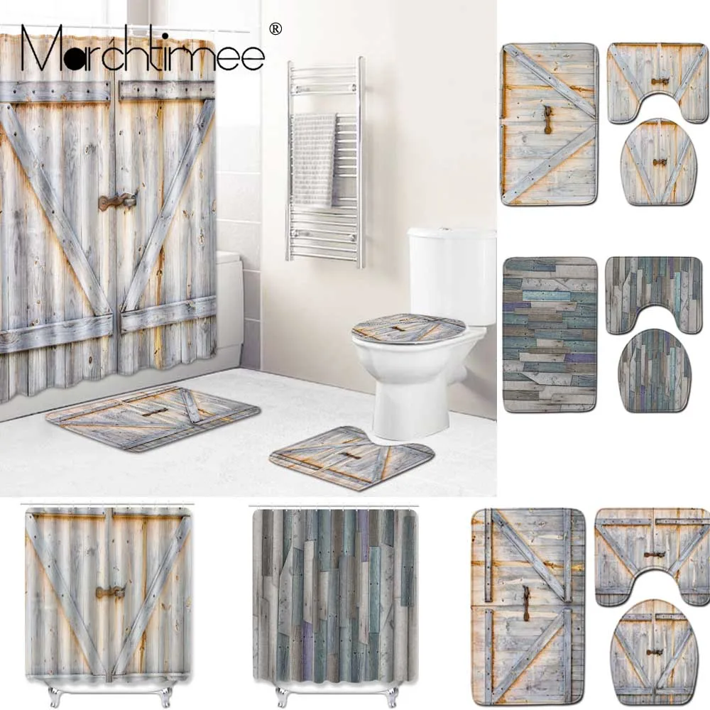 Special Offer Porta Di Legno Stampato Impermeabile Tenda Della Doccia Bagno In Marmo Tende Da Doccia Tappetini Set Costume Da Bagno Wc Copertura Non-slip Pad Zerbino Discount (55%OFF) Today!