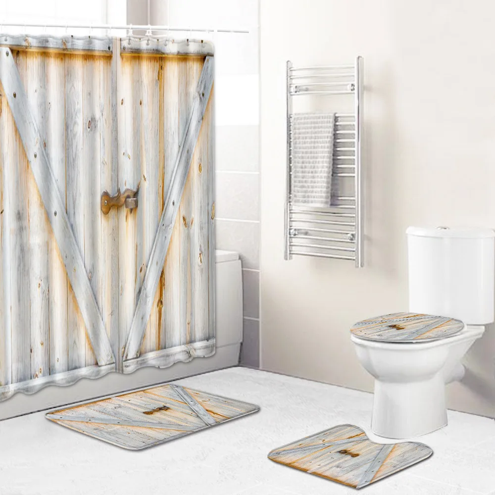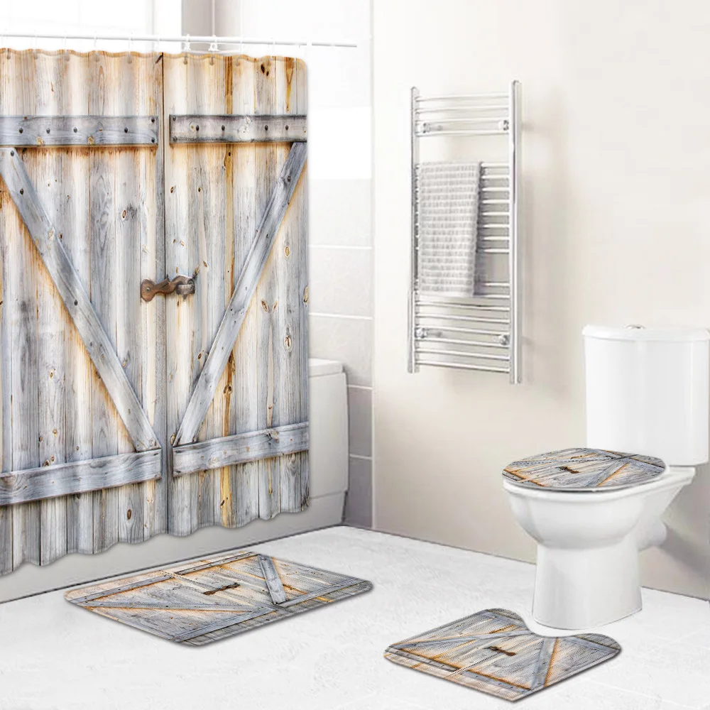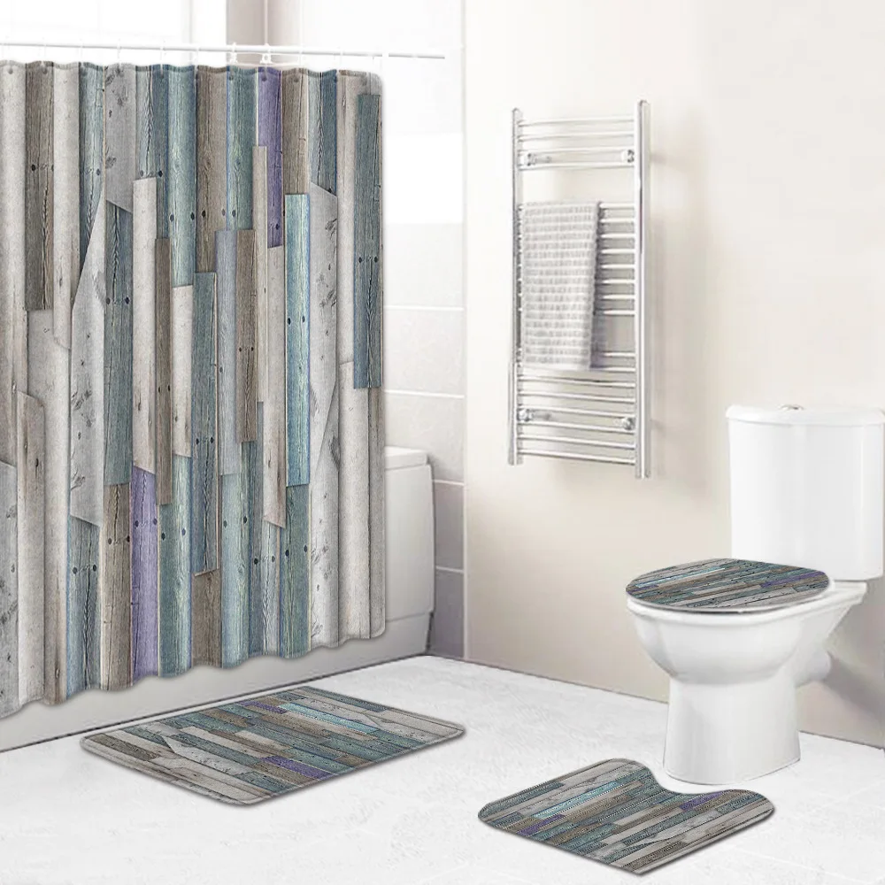 Product Name: Porta Di Legno Stampato Impermeabile Tenda Della Doccia Bagno In Marmo Tende Da Doccia Tappetini Set Costume Da Bagno Wc Copertura Non-slip Pad Zerbino
