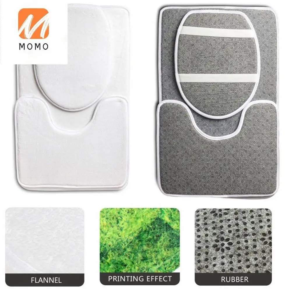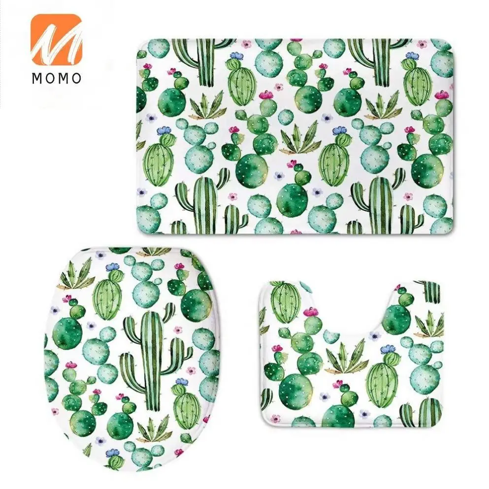 Product Name: Set Di Tappeti E Tappetini Da Bagno Verde Antiscivolo In Flanella Stampata Set Di 3 Pezzi