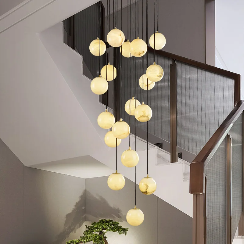 Product Name: Scale Nordic Minimalista Loft Lampade E Lanterne In Marmo Vuoto Duplex Edificio Moderno Nuovo Lampadario Cinese Soggiorno
