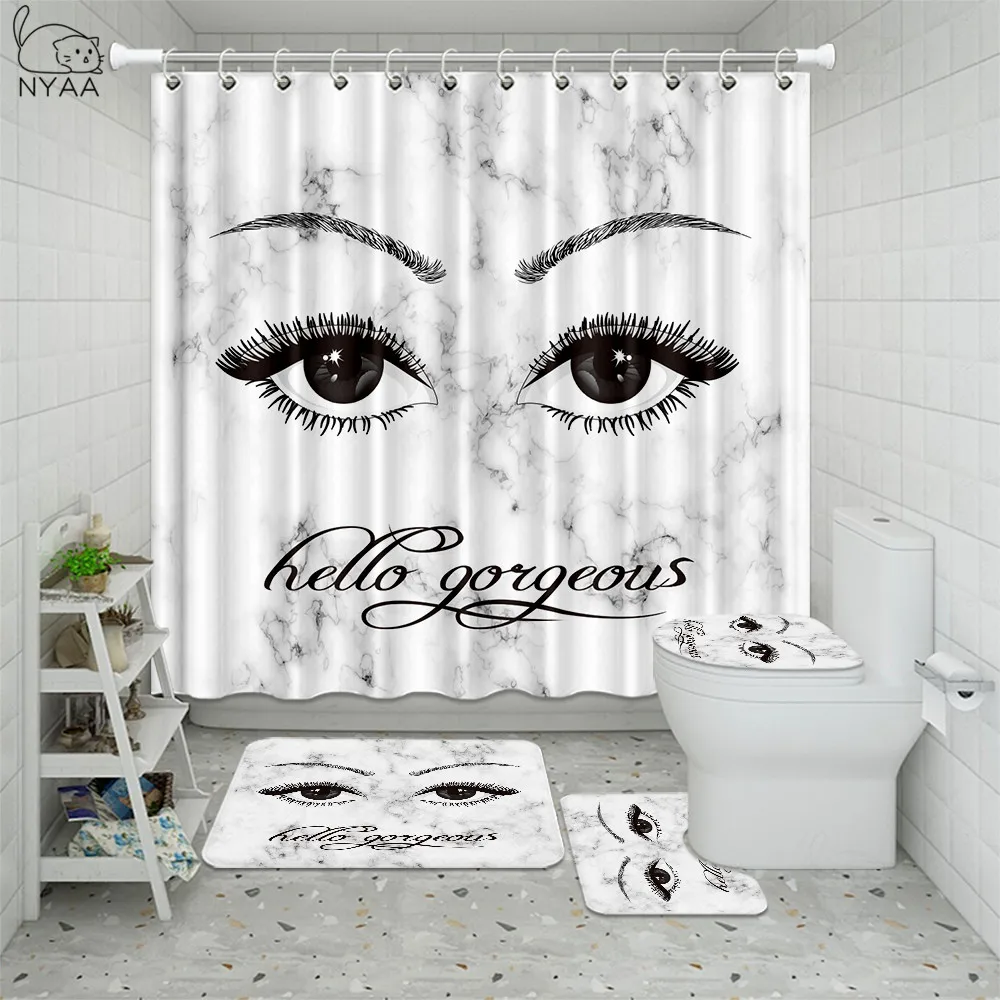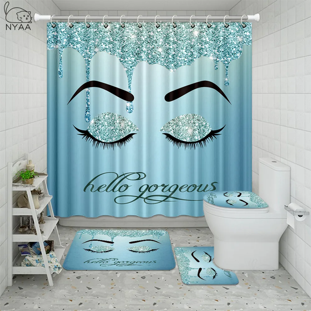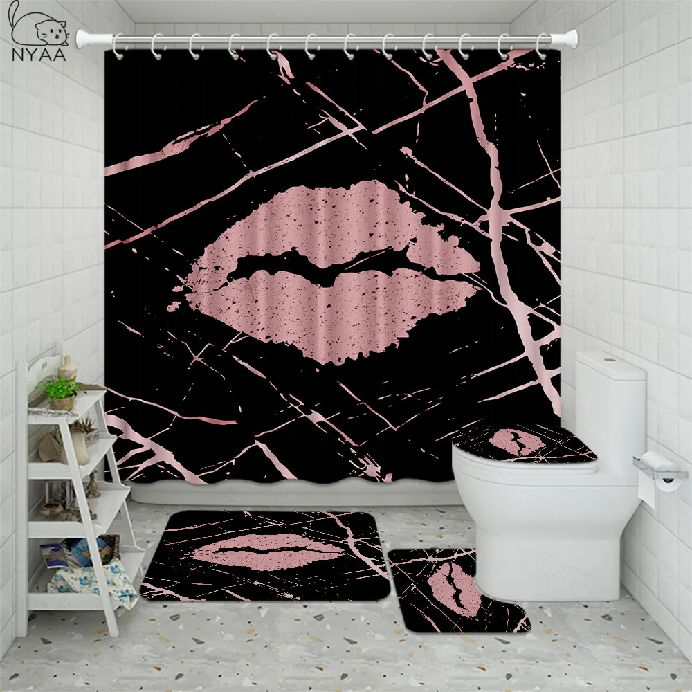 Product Name: 4 Pz/set Ciglia Antiscivolo Tappeti Da Bagno Set Cosmetici Impermeabili Rossetto Tenda Da Doccia Tipo U Tappetini Coprivaso Bagno Decor