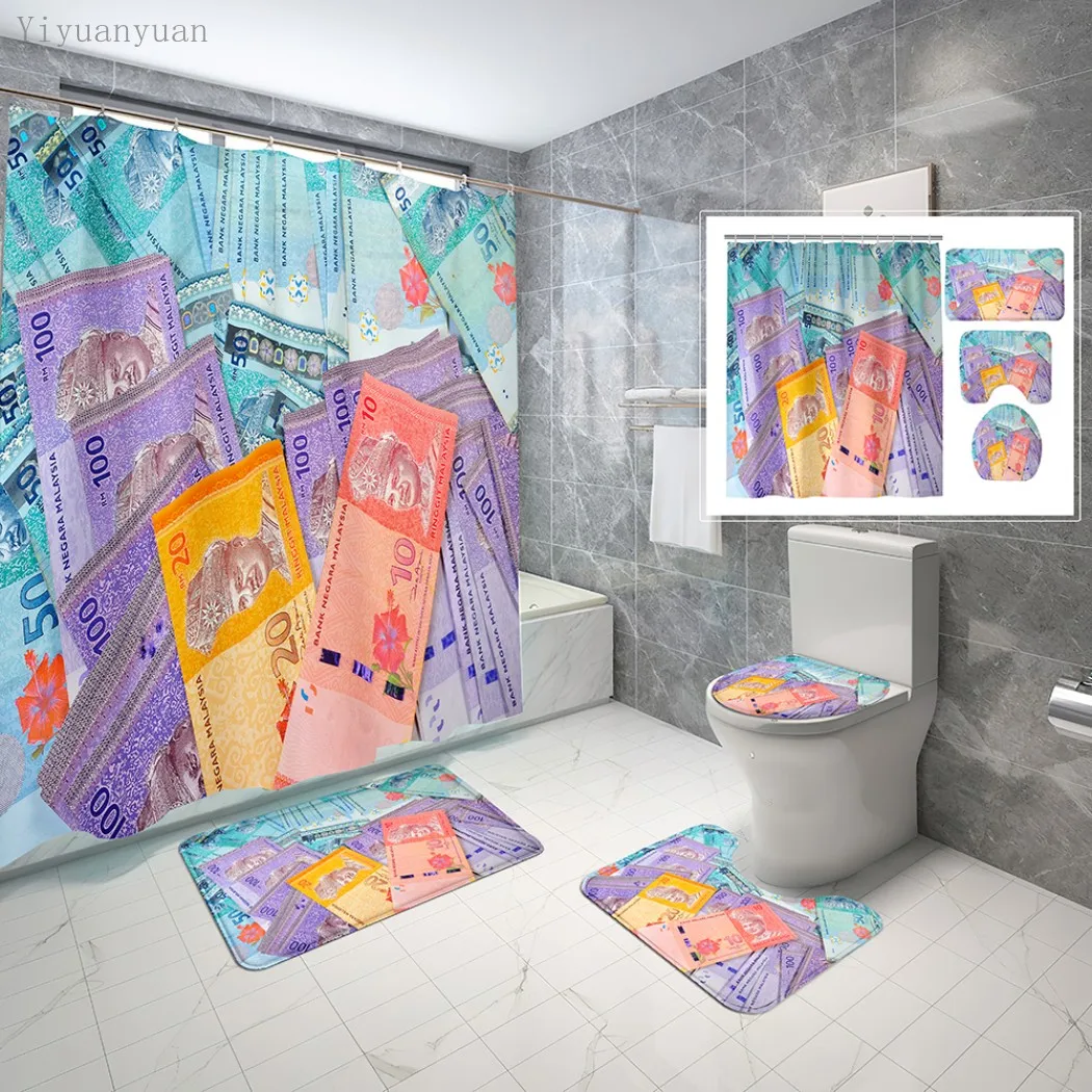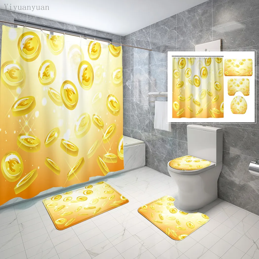 Special Offer Denaro Moneta D'oro Valuta Tenda Per Doccia Accessorio Per Bagno Stampato In 3D 4 Pezzi Coperchio Per Piedistallo Coperchio Per Wc Tappetino Da Bagno Set Decorazioni Per La Casa Discount [NEW!!] Today!