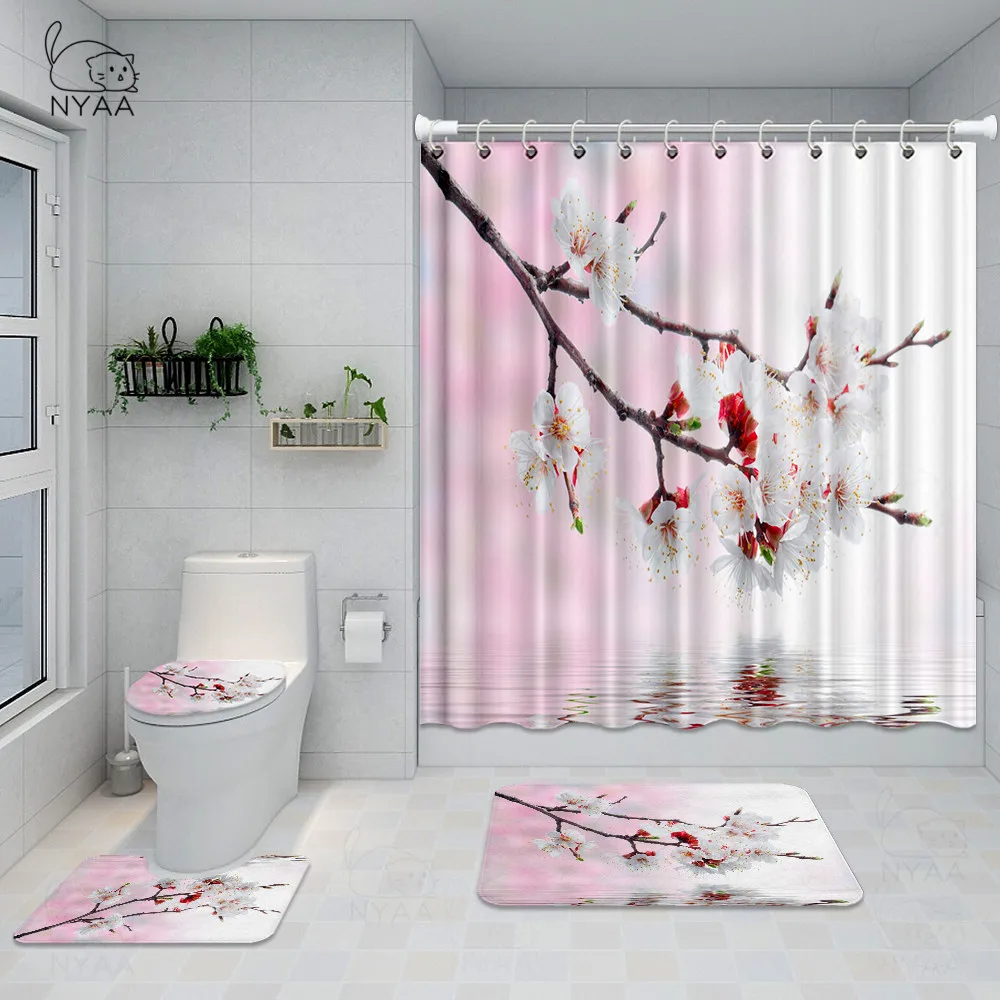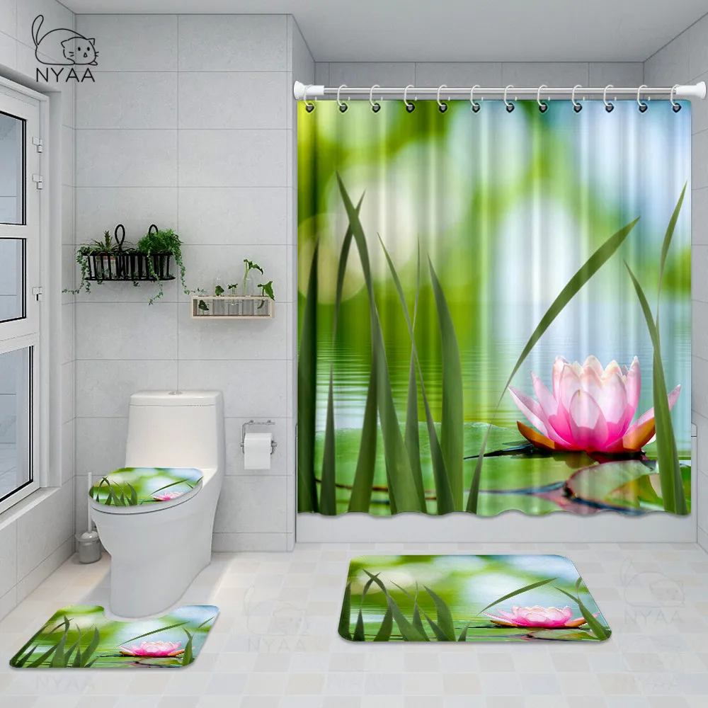 Special Offer Tulipano Fiori Di Loto Alberi Zen Stone Impermeabile Tenda Della Doccia Bagno Tende Set Antiscivolo Tappeti Coperchio Del Wc Copertura Zerbino Tappeto Discount [NEW!!] Today!