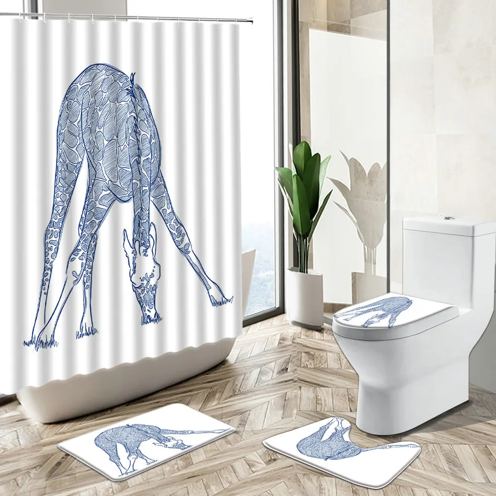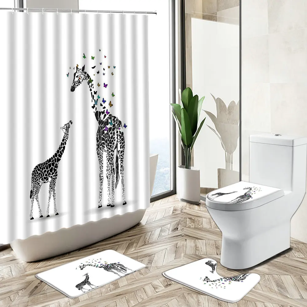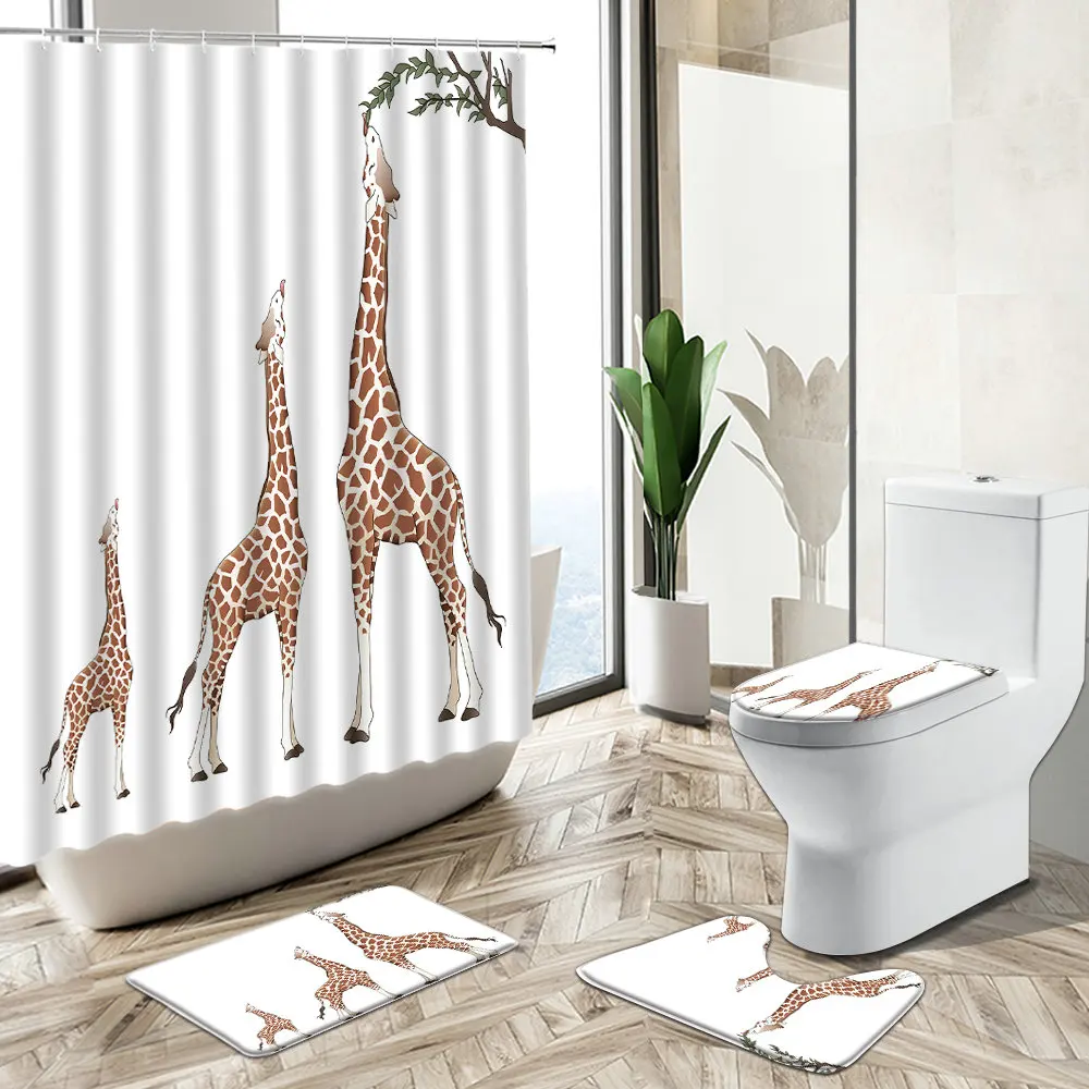 Special Offer Cartone Animato Giraffa Tenda Da Doccia Zebra Uccello Astratto Stampa Animalier Antiscivolo Piedistallo Tappeto Copriwater Bambino Casa Bagno Deco Set Discount (48%OFF) Today!