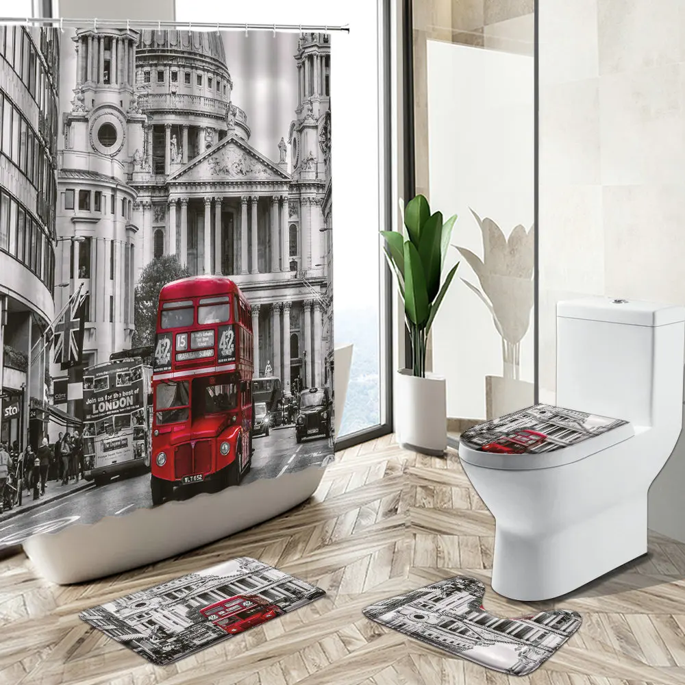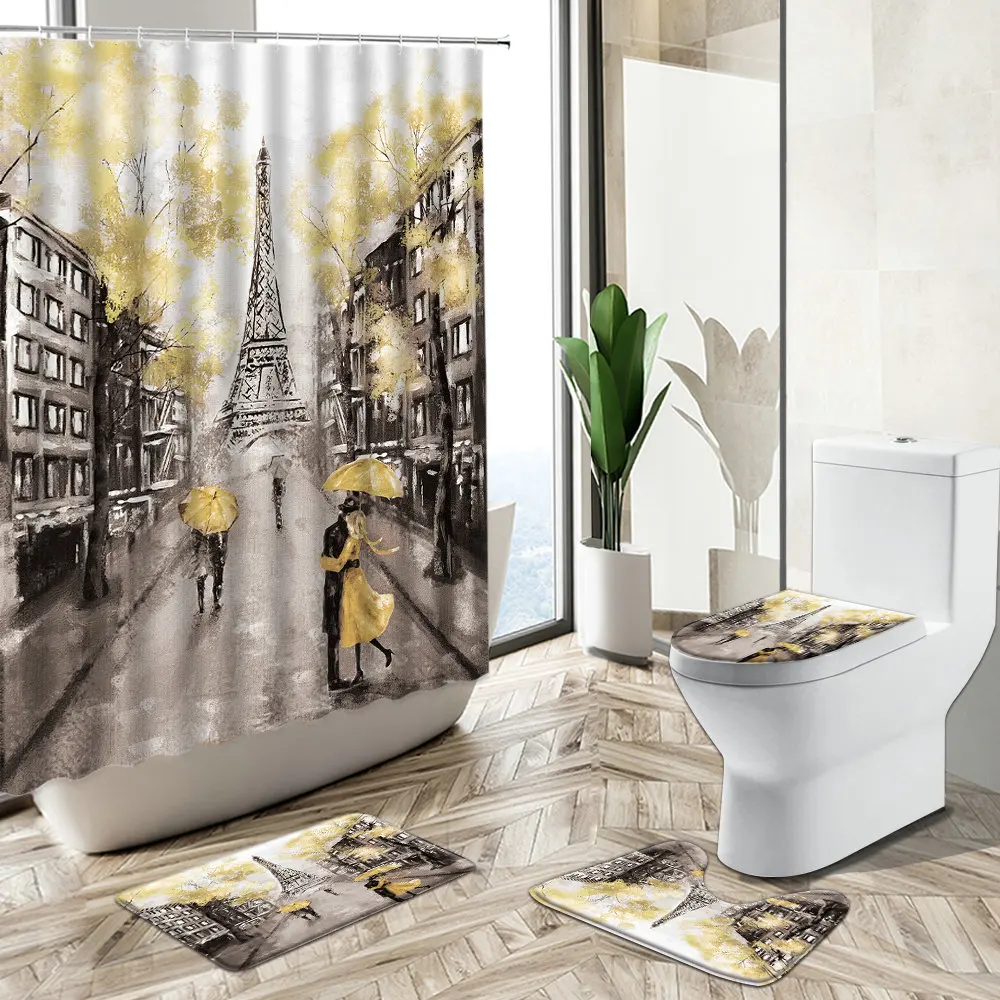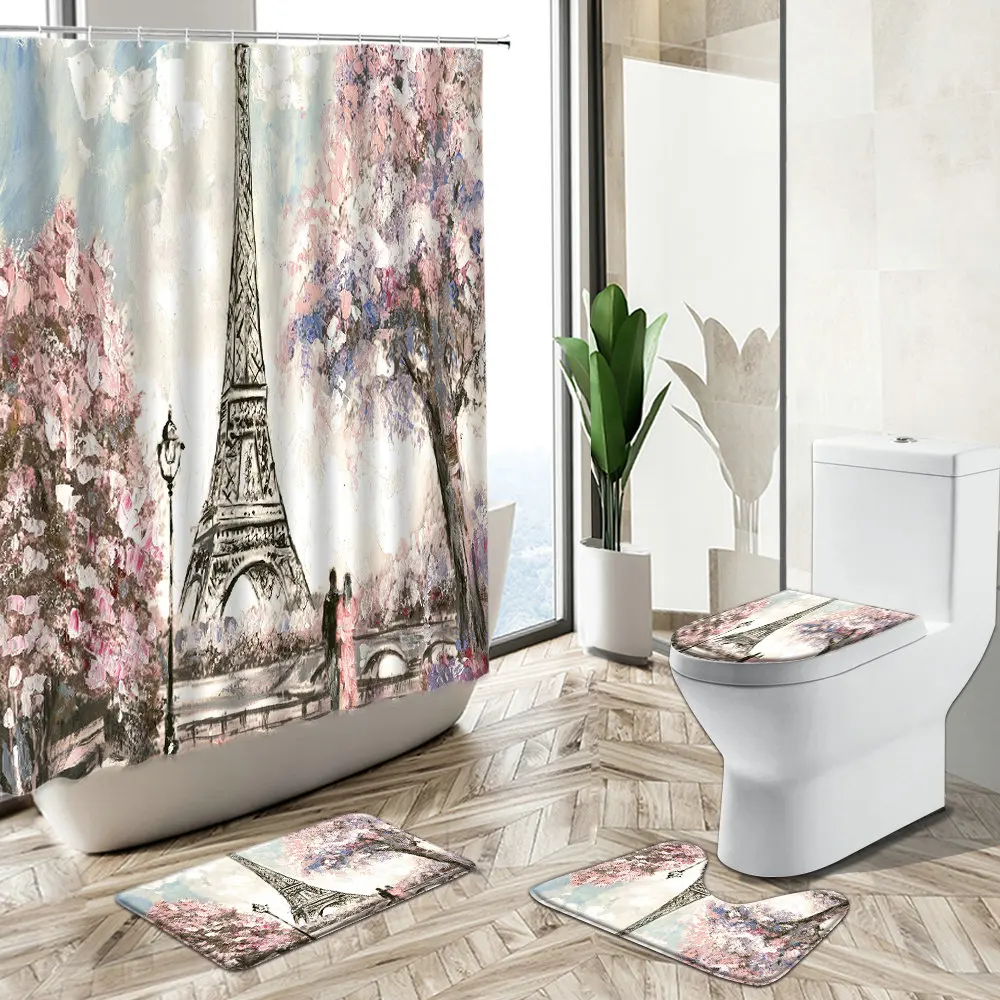 Product Name: Retro Paris Street View Tenda Da Doccia Romantica Torre Di Fiori Coppia Decorazioni Per Il Bagno Tappeto Antiscivolo Coperchio Del Coperchio Del Water Set Di Tappetini Da Bagno