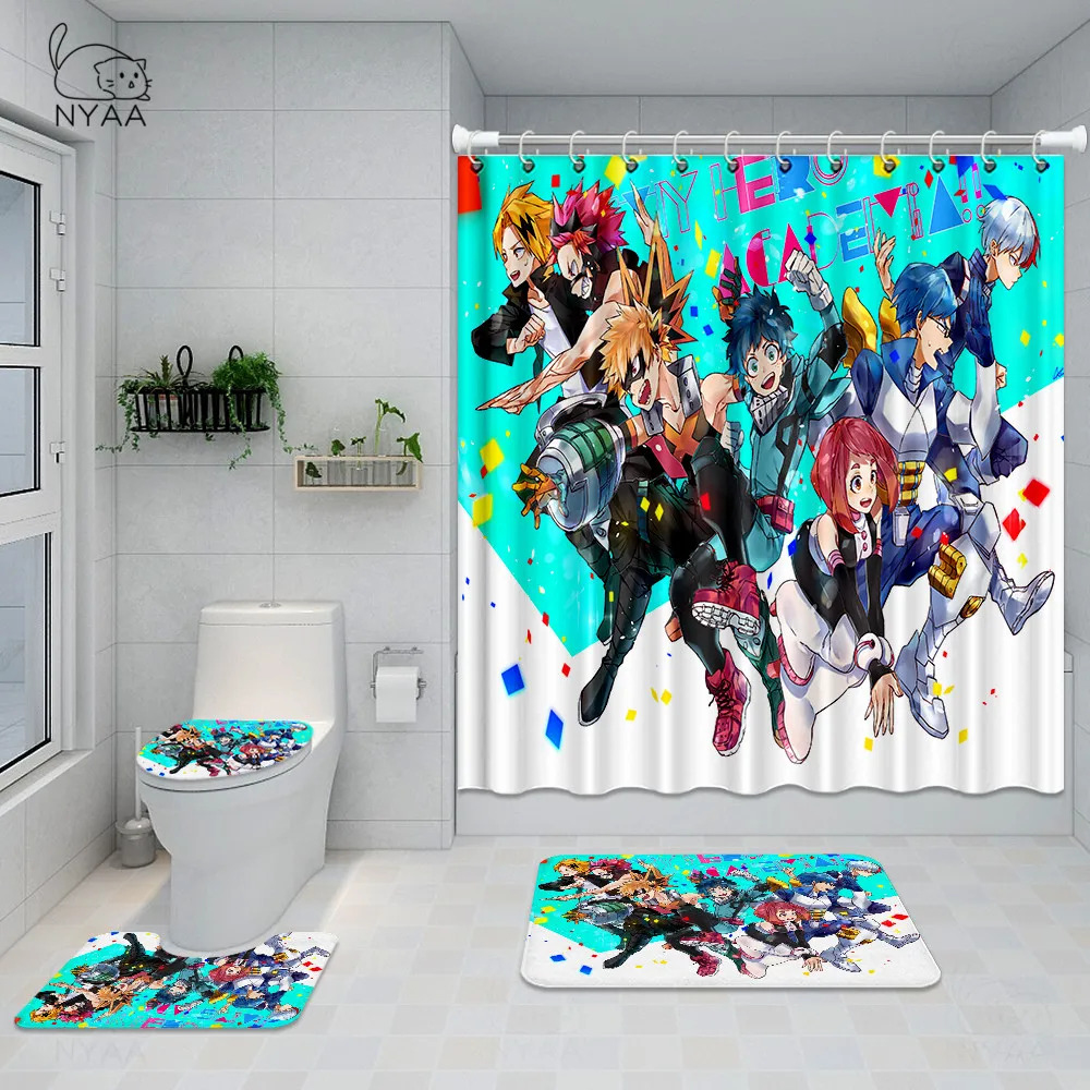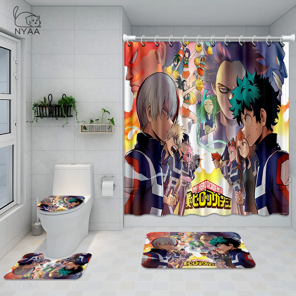 Special Offer NYAA 4 Pezzi Tenda Da Doccia Per Bagno My Hero Academy Anime Set Di Tende Da Bagno Impermeabili Set Di Tappeti Da Bagno Antiscivolo Discount [NEW!!] Today!
