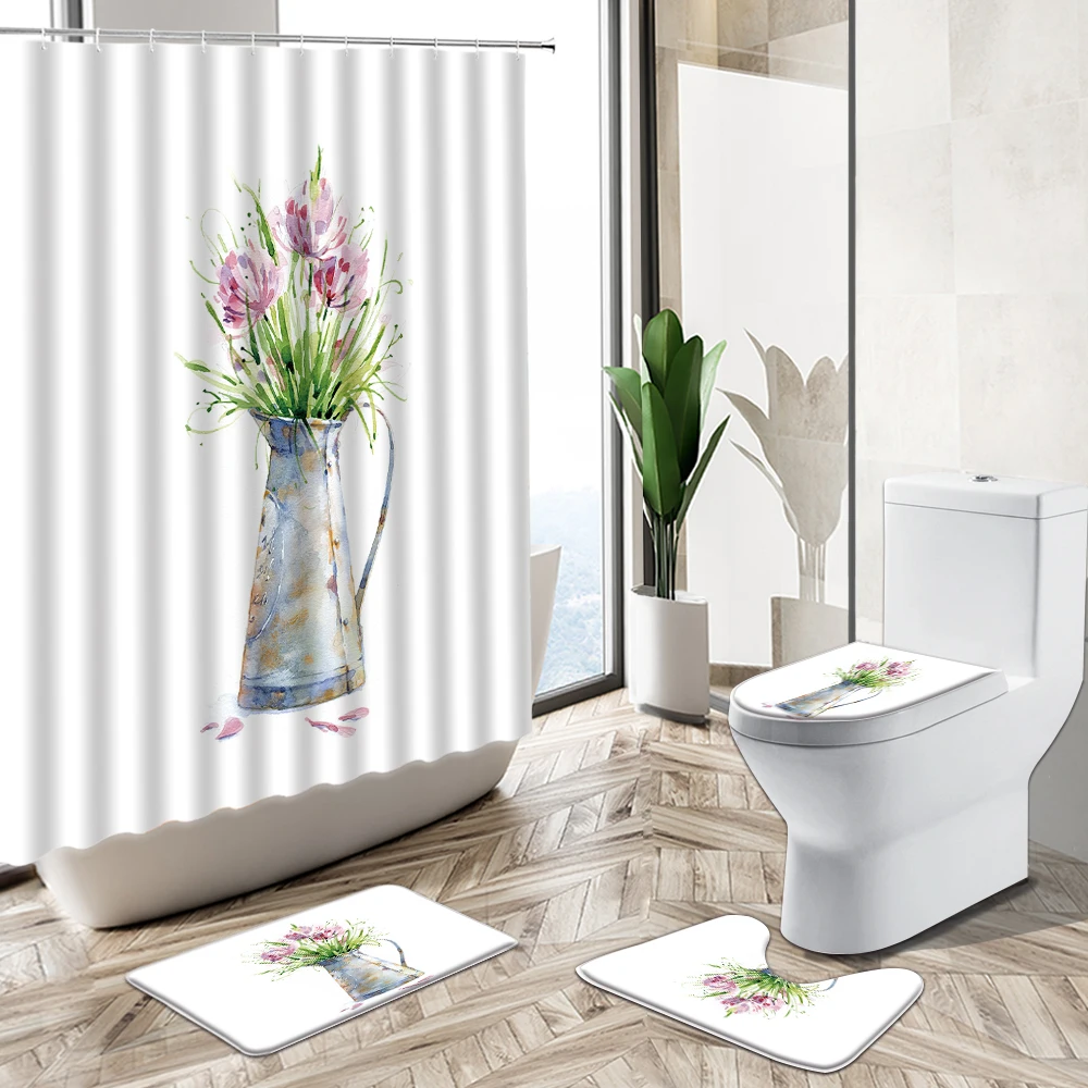 Special Offer Pianta Verde Foglia Tenda Da Doccia In Vaso Sfondo Bianco Decorazioni Per Il Bagno In Stile Nordico Tappeto Antiscivolo Coperchio Per Wc Set Tappetino Da Bagno Discount (48%OFF) Today!