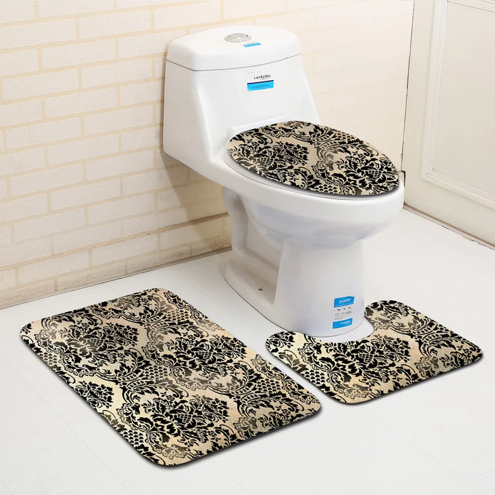 Product Name: Coprisedile Moderno Per Wc Assorbimento D'acqua 3 Pezzi Set Tappeti Decorazione Bagno Di Casa Tappetini Antiscivolo Stampa Modello Tappeto