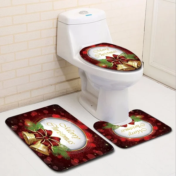 Product Name: Bagno Buon Natale Campana Di Natale Di Stile Di Trasporto Decor-Non-Slip Piedistallo Tappetini Coperchio Del Wc Wc Copertura Bagno Zerbino Poliestere Impermeabile Doccia