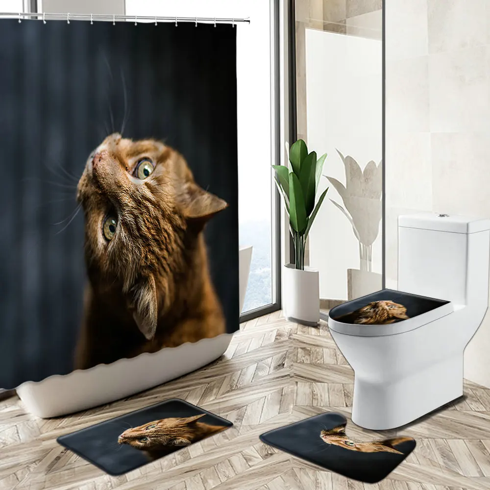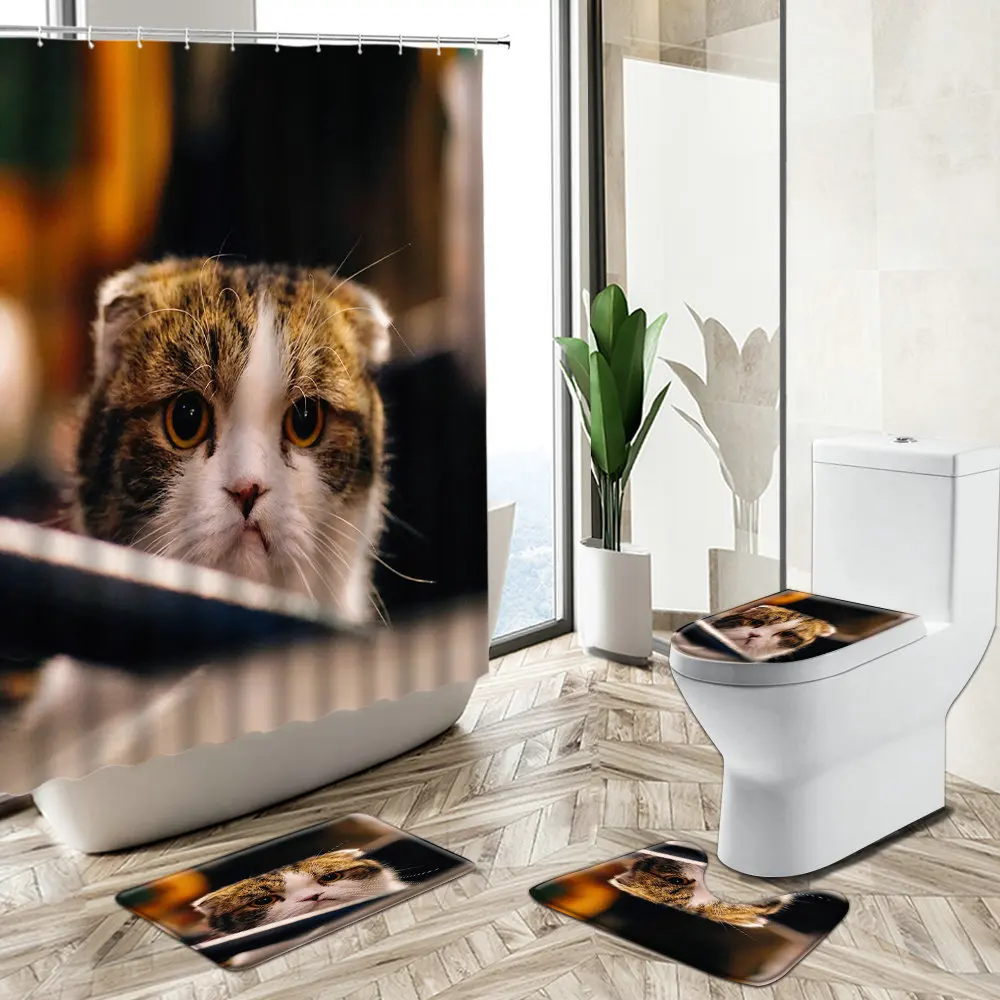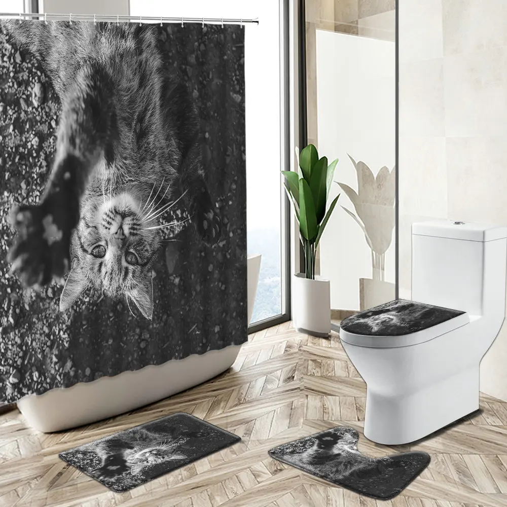 Product Name: Simpatico Set Di Tende Per Doccia Con Stampa Animalier Gatto Divertente Tema Per Animali Domestici Vasca Da Bagno Impermeabile Art Deco Tappeto Antiscivolo Copriwater Tappetino Da Bagno