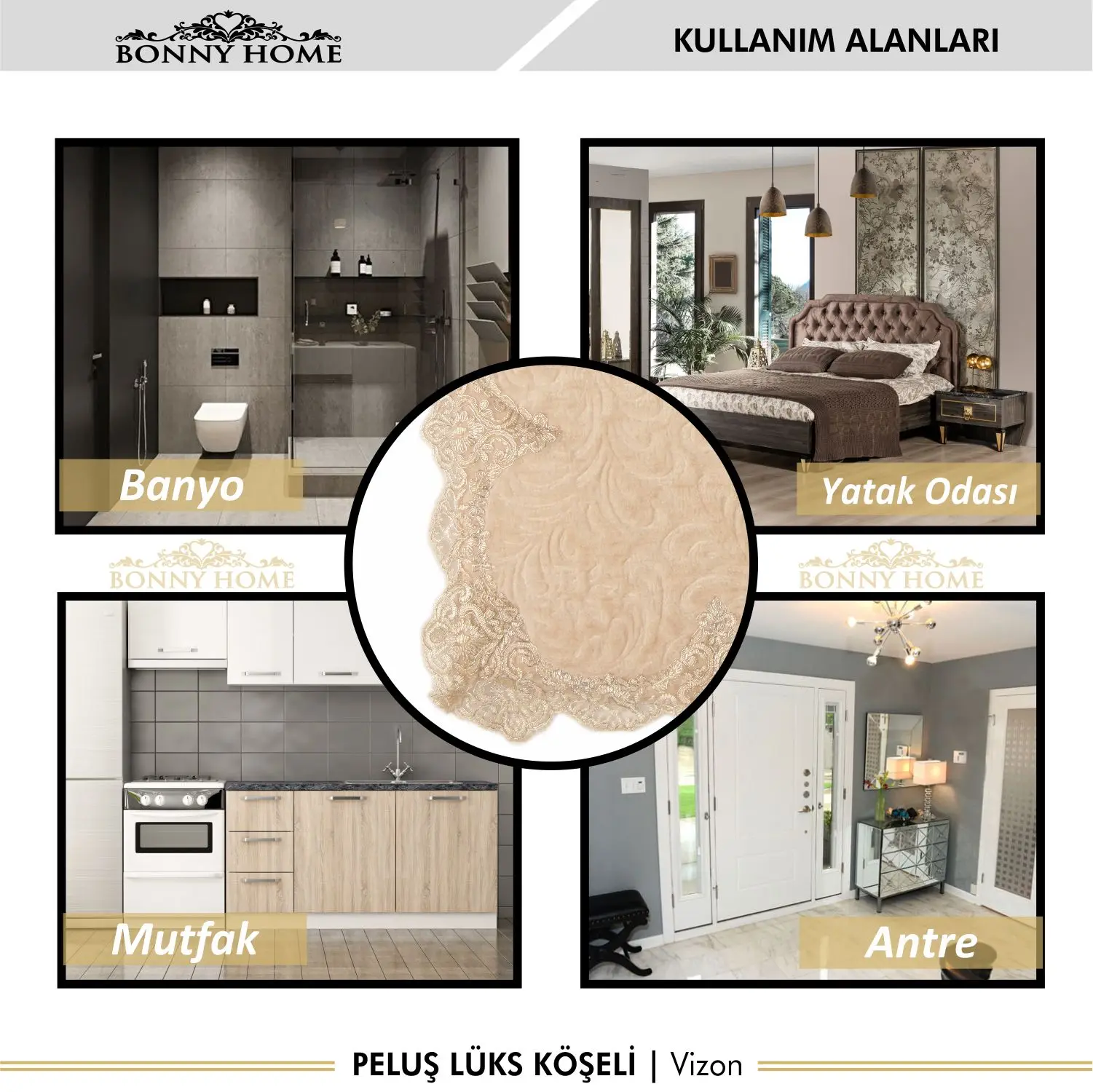 Product Name: Bonny Home Plush Lux Rettangolo Beige 2 Pezzi Tappetino Da Bagno In Pizzo Set Tappeto Da Bagno Di Lusso Antiscivolo