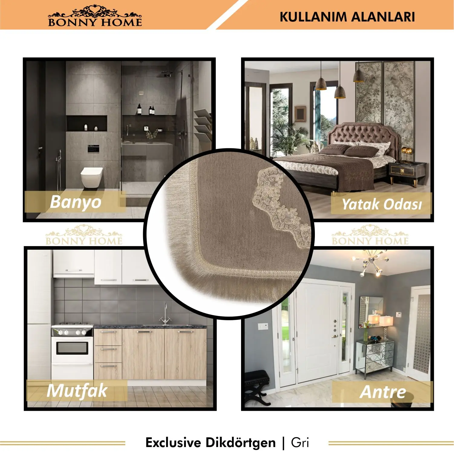 Product Name: Bonny Home Esclusivo Rettangolo Grigio 3 Pezzi Tappetino Da Bagno In Peluche Di Pizzo Francese Set Di Tappeti Lavabili In Lavatrice A Base Di Pelle Antiscivolo
