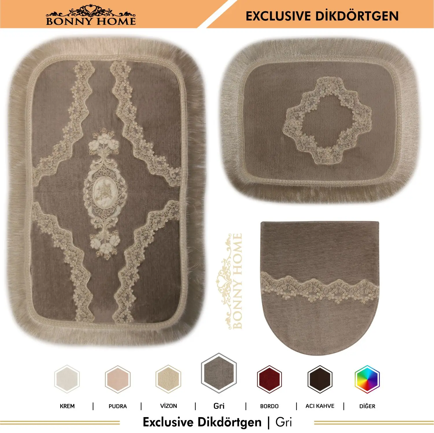 Special Offer Bonny Home Esclusivo Rettangolo Grigio 3 Pezzi Tappetino Da Bagno In Peluche Di Pizzo Francese Set Di Tappeti Lavabili In Lavatrice A Base Di Pelle Antiscivolo Discount (40%OFF) Today!