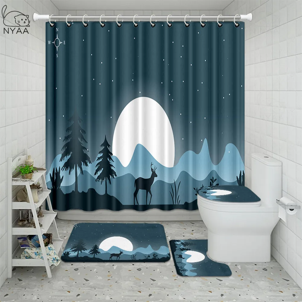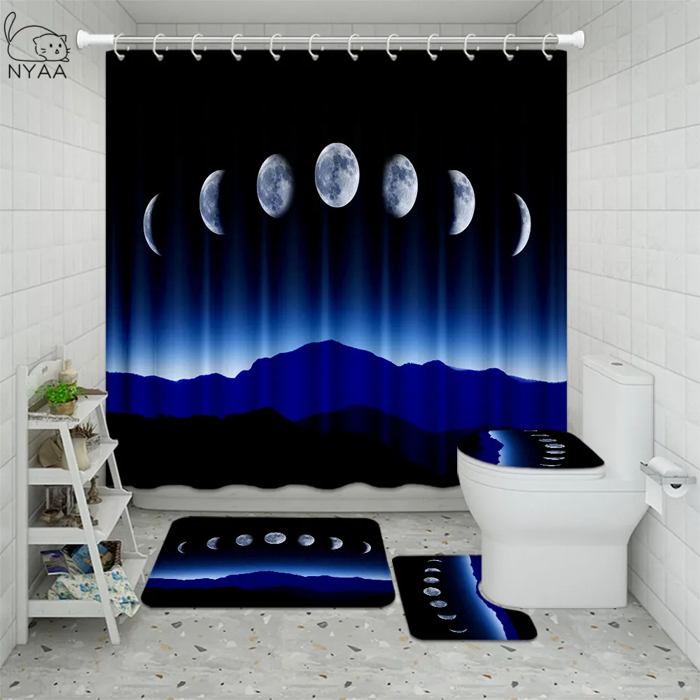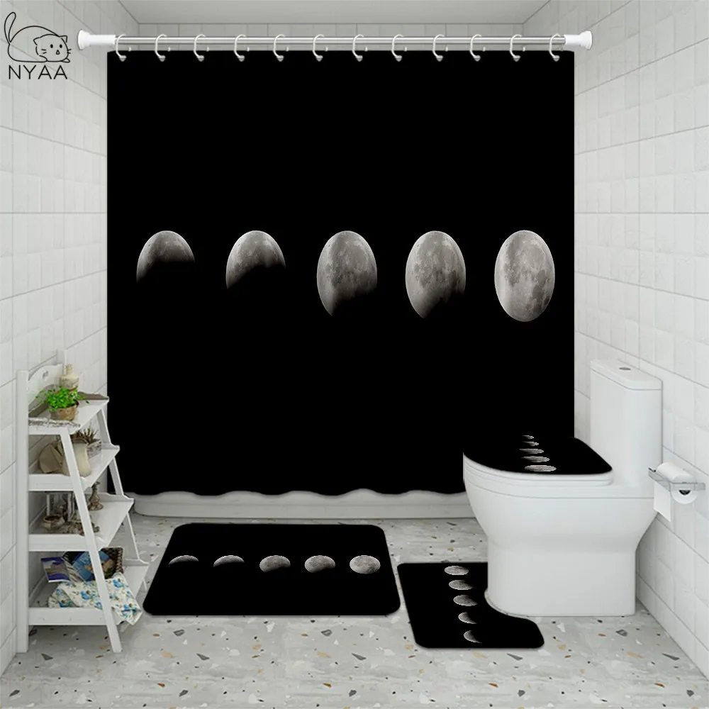 Product Name: Nordic Fasi Lunari Di Arte Pittura Tenda Della Doccia Set 4pcs Moon Phase Stampe Sistema Solare Tenda Tenda Vasca Da Bagno Per Il Bagno Zerbino Tappetini Tappeto