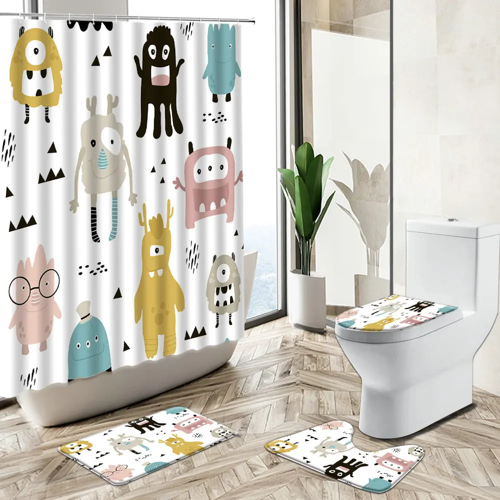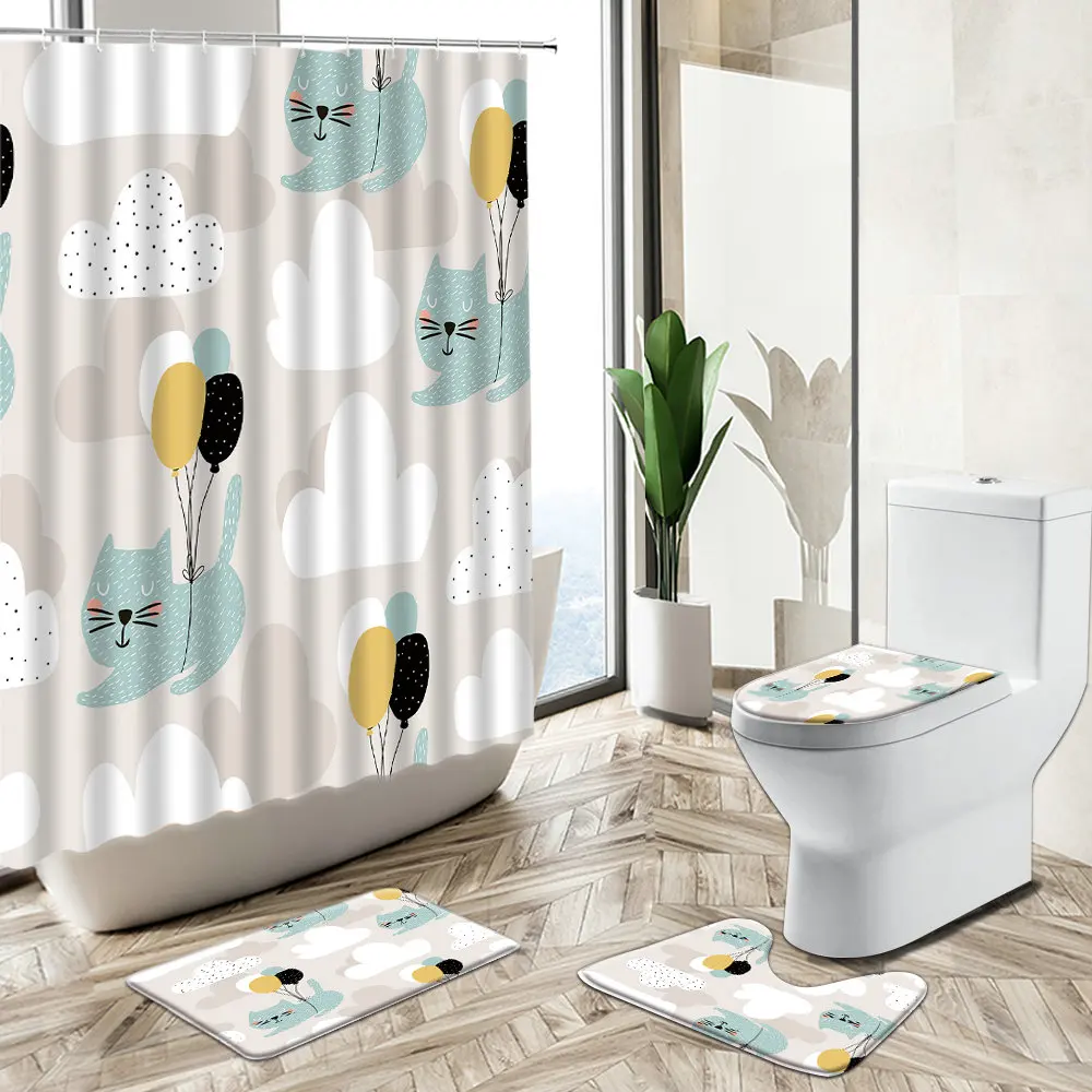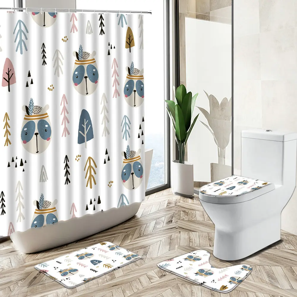 Special Offer Cartoon Simpatici Animali Bambino Bagno Tenda Da Doccia Divertimento Gatto Cane Leone Panda Stampa Antiscivolo Piedistallo Tappeto Copriwater Set Home Deco Discount (48%OFF) Today!