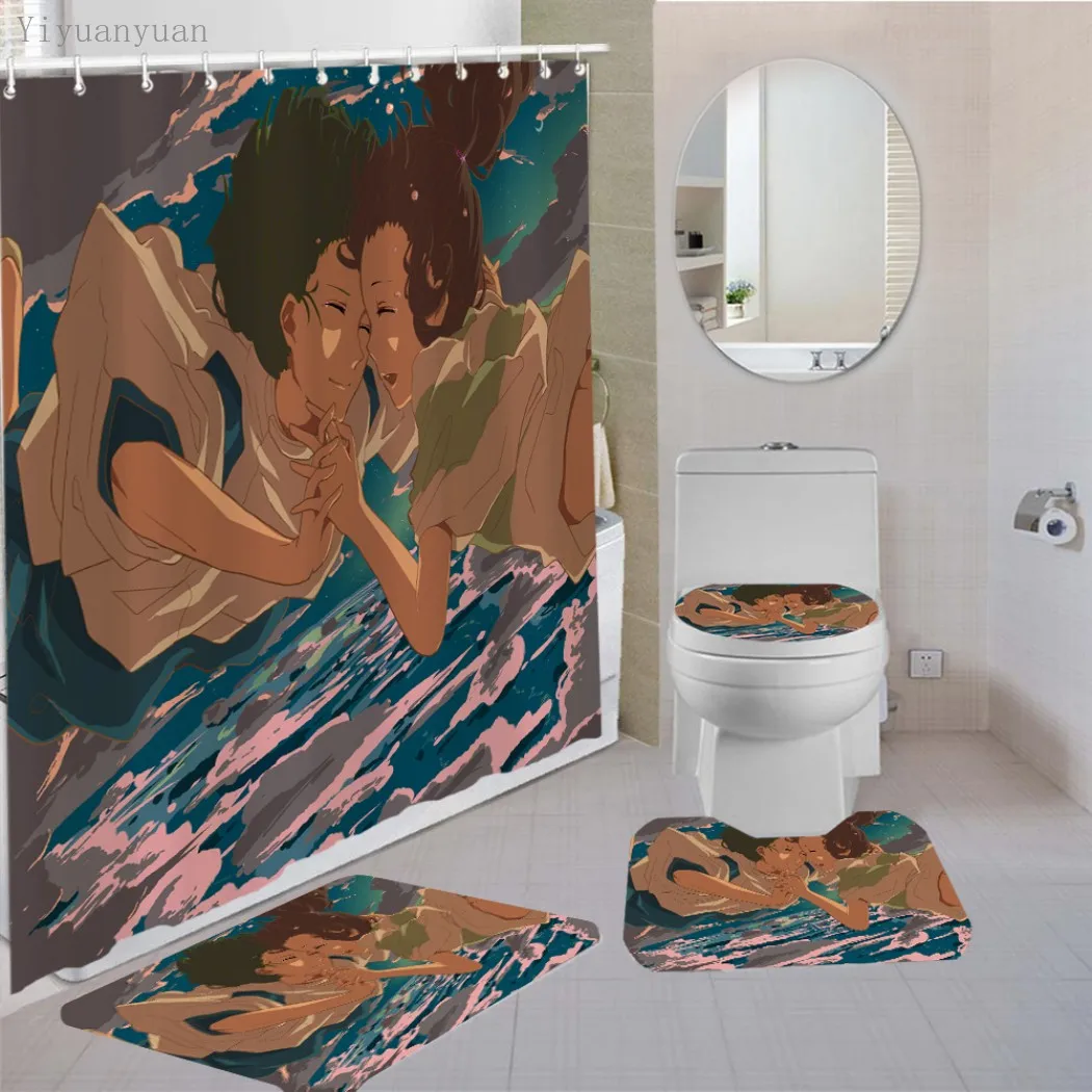 Product Name: Set Di Tende Da Bagno Con Stampa 3D Di Cartoni Animati Spirited Away Set Di Tappeti Da Bagno Antiscivolo Per Tende Da Doccia Impermeabili