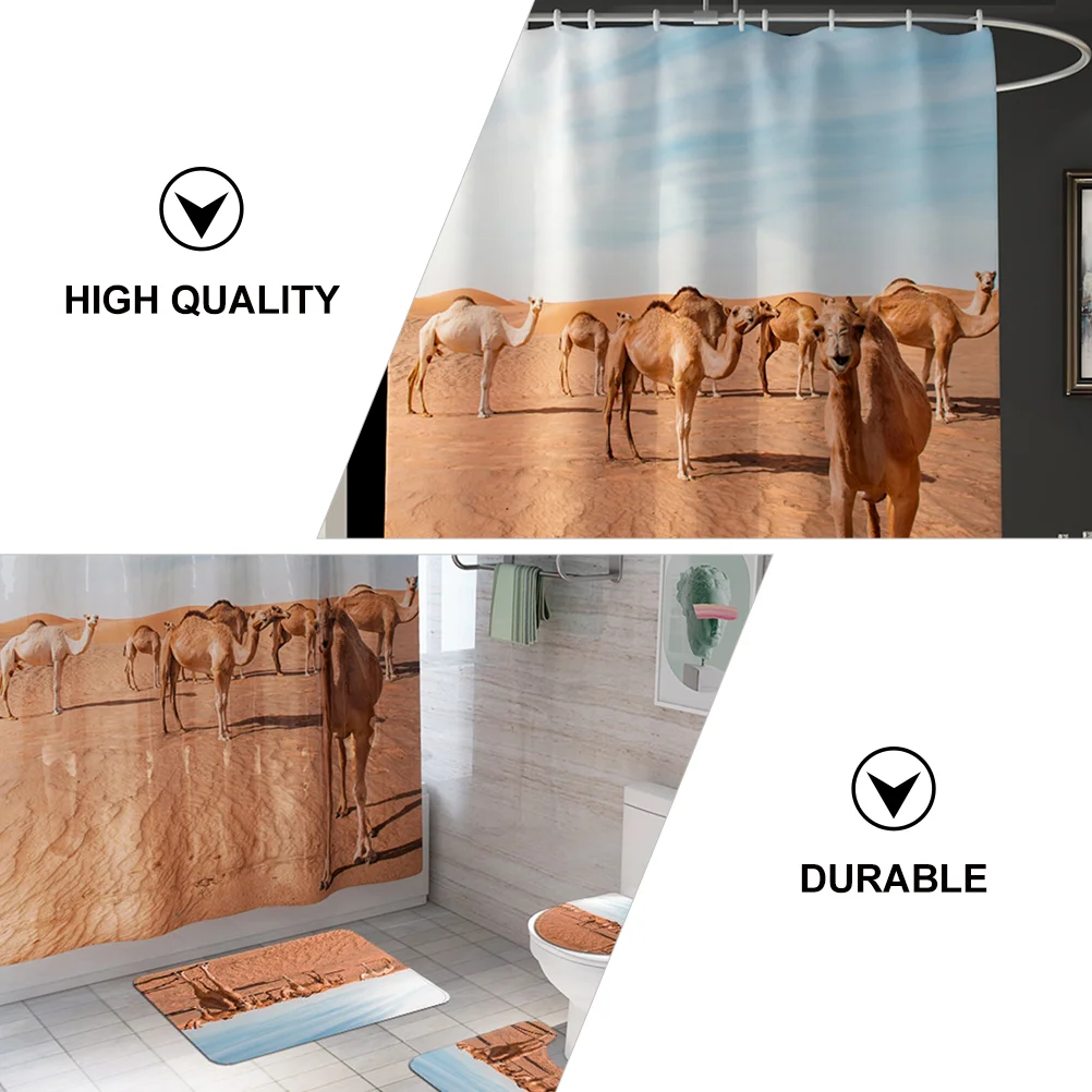 Product Name: Tappetino Da Bagno Antiscivolo Stampato Cammello 4 Pezzi E Set Di Tende Da Doccia Per Bagno