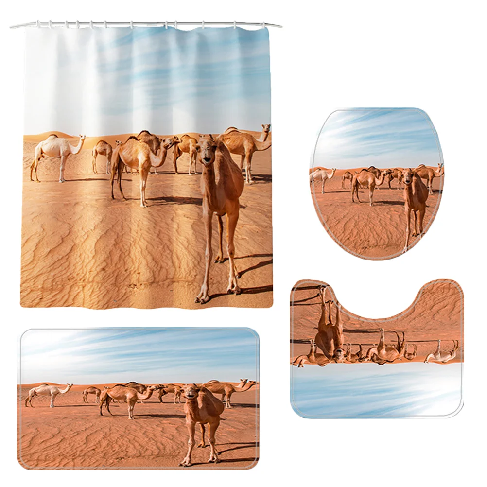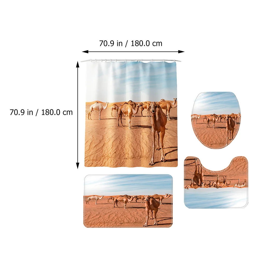 Special Offer Tappetino Da Bagno Antiscivolo Stampato Cammello 4 Pezzi E Set Di Tende Da Doccia Per Bagno Discount [NEW!!] Today!