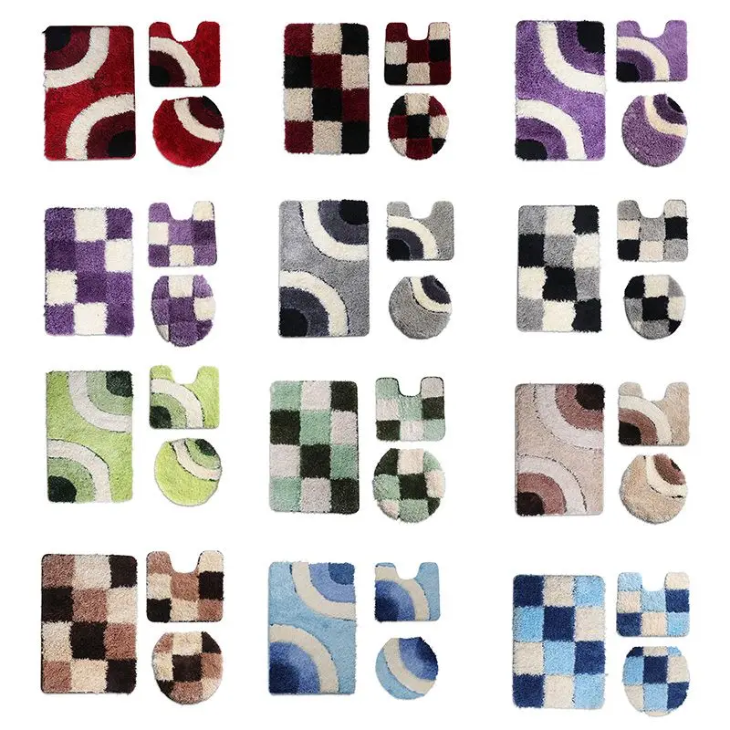 Special Offer Set Di Tappeti Da Bagno A Quadri Geometrici 3 Pezzi Floccaggio Tappetino Da Bagno Assorbente D'acqua Tappeto Antiscivolo Contorno Coperchio Del Sedile Del Water Discount (40%OFF) Today!