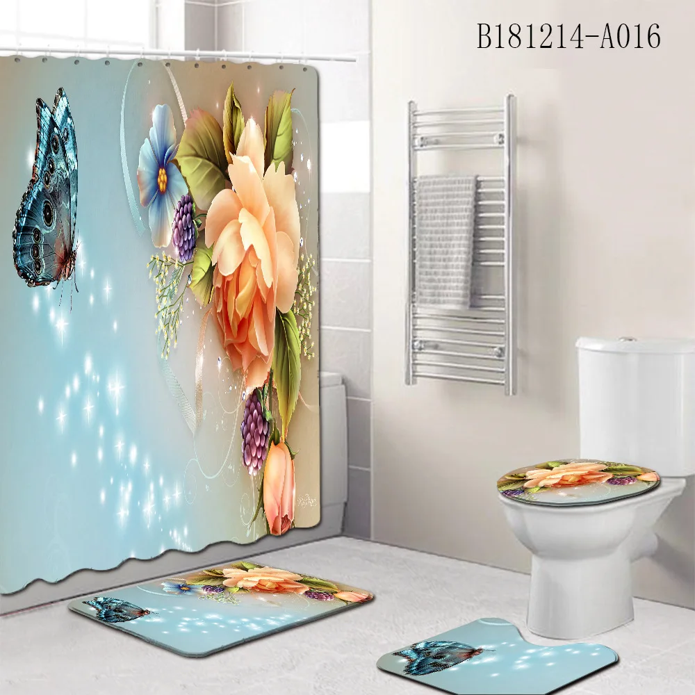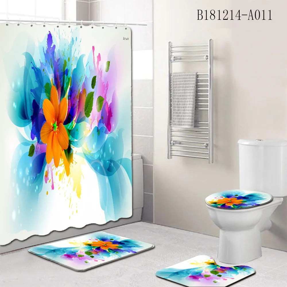 Special Offer 4 Pz/set Stampa Floreale Tende Da Bagno Impermeabili Set Di Tende Da Doccia Tappeti Antiscivolo Coperchio Del Coperchio Del Water E Tappetino Da Bagno Decor Vasca Discount (45%OFF) Today!