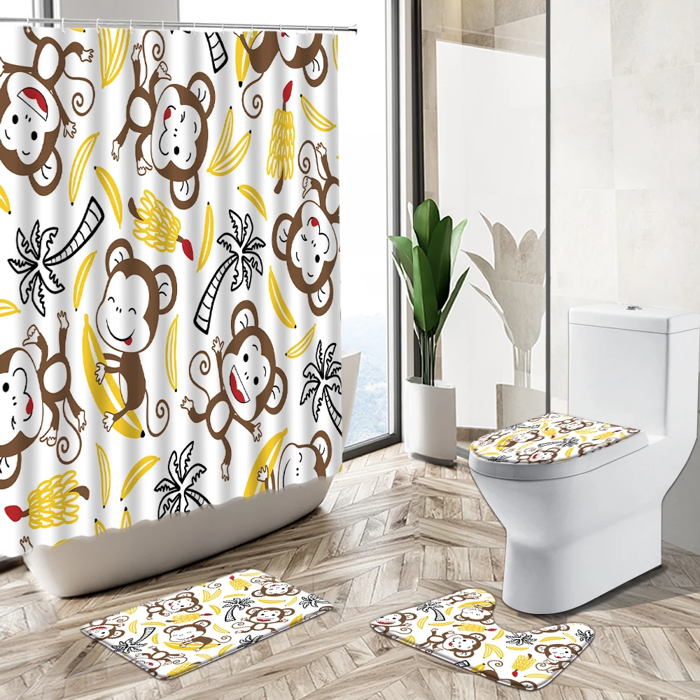 Product Name: Cartoon Elephant Baby Kids Bagno Set Di Tende Per Doccia Simpatico Panda Scimmia Animale Tappeto Antiscivolo Coperchio Del Water Tappetino Da Bagno Home Deco