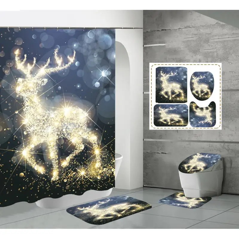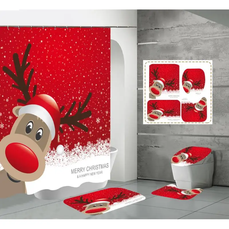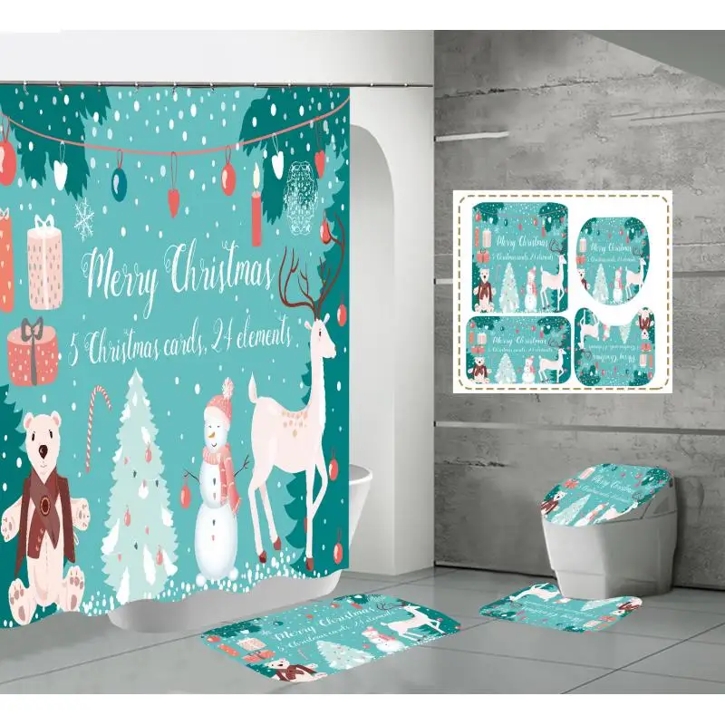 Product Name: 2 Set/lotto Pupazzo Di Neve Di Natale Stampato Modello Tenda Della Doccia Piedistallo Tappeto Coperchio Copriwater Tappetino Da Bagno Antiscivolo Set Bagno