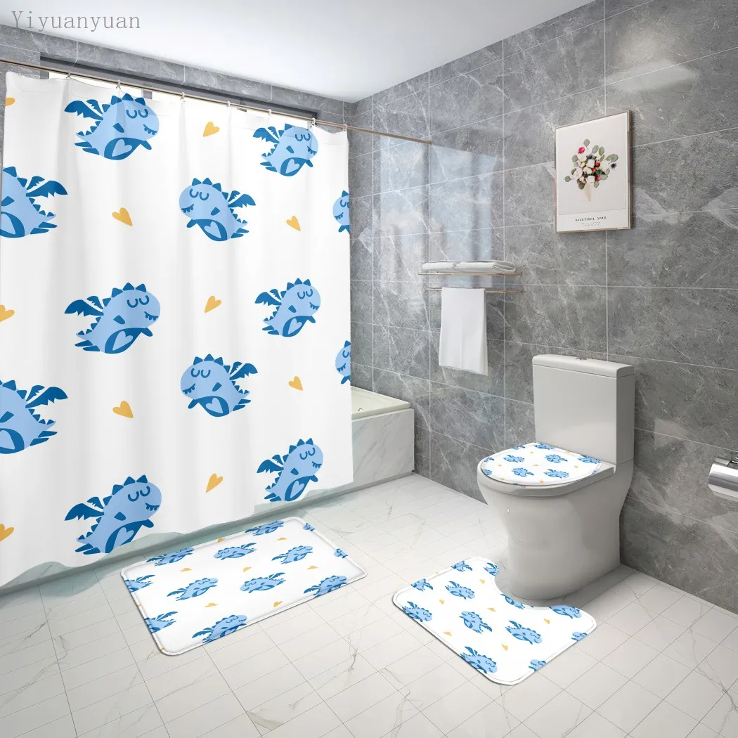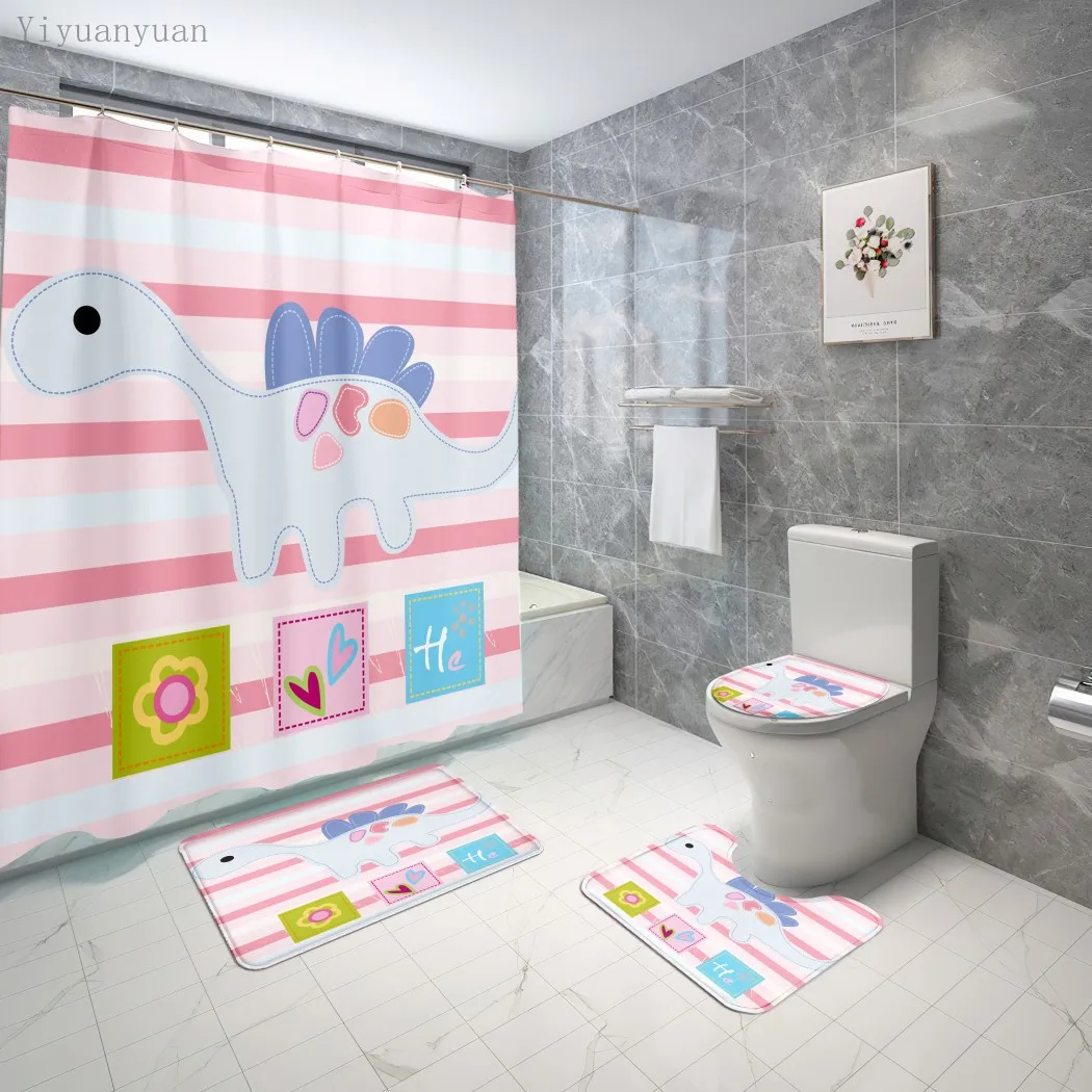 Special Offer Cartoon Little Dinosaur Stampato 180x180cm Tenda Da Doccia Piedistallo Tappeto Coperchio Copriwater Tappetino Da Bagno Antiscivolo Set Bagno Discount [NEW!!] Today!