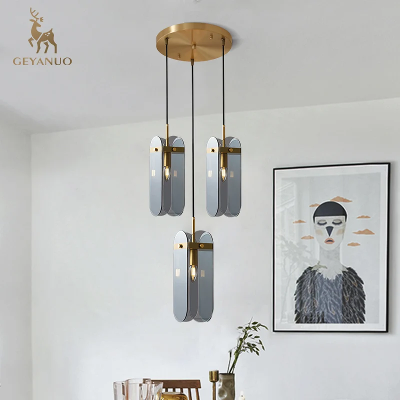 Product Name: Lampadario Post-moderno Grigio Di Lusso Chiaro Per Sala Da Pranzo Planet Grey Semplice Illuminazione In Rame Lampade E Lanterne Nordiche A Tre Teste
